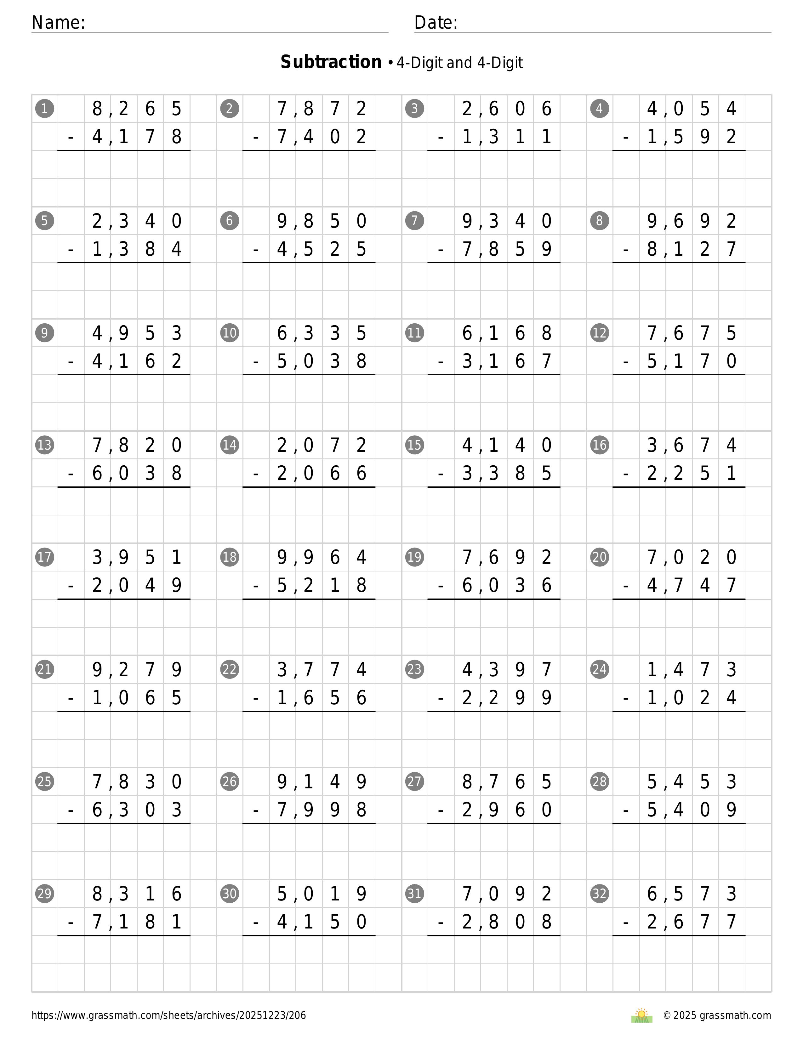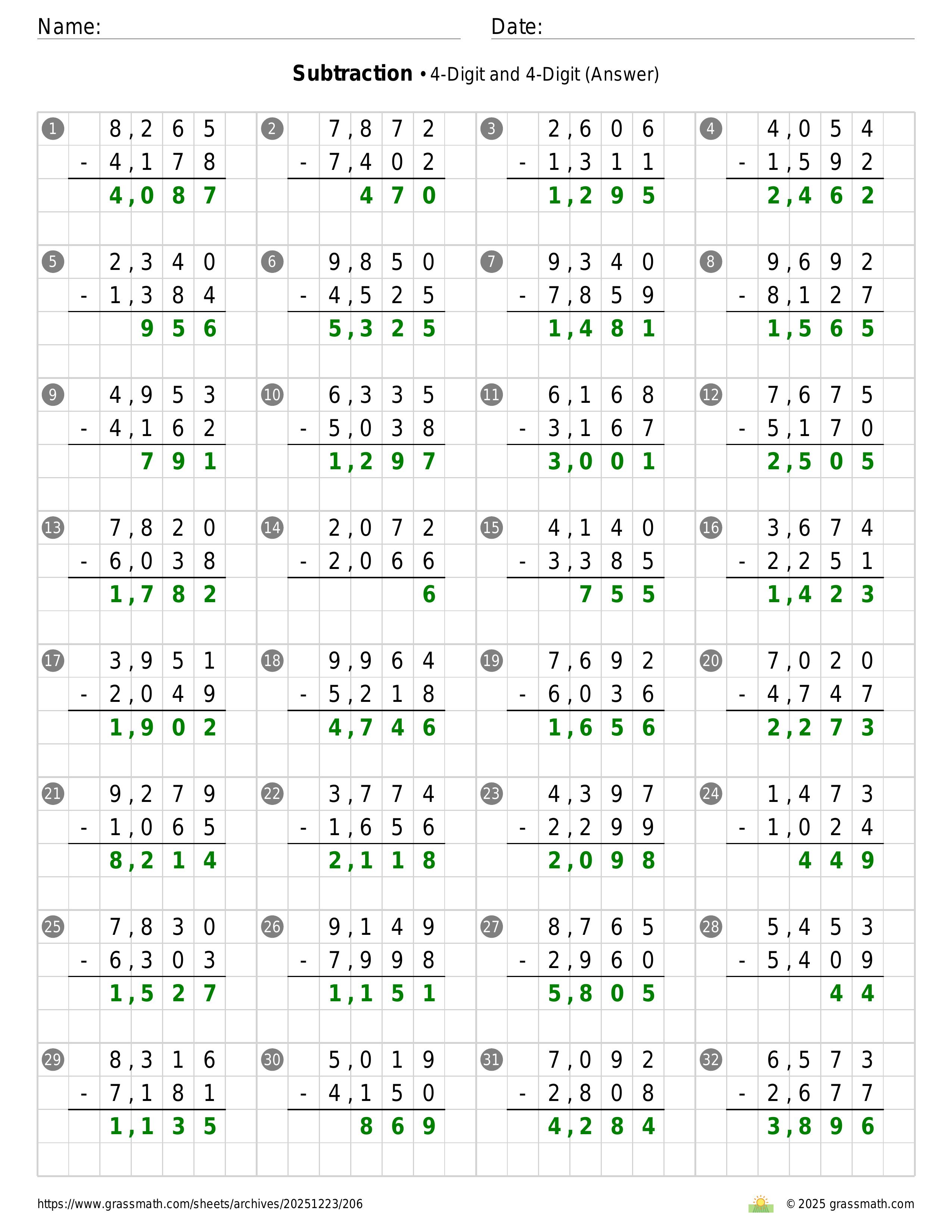 Subtraction 4-Digit and 4-Digit