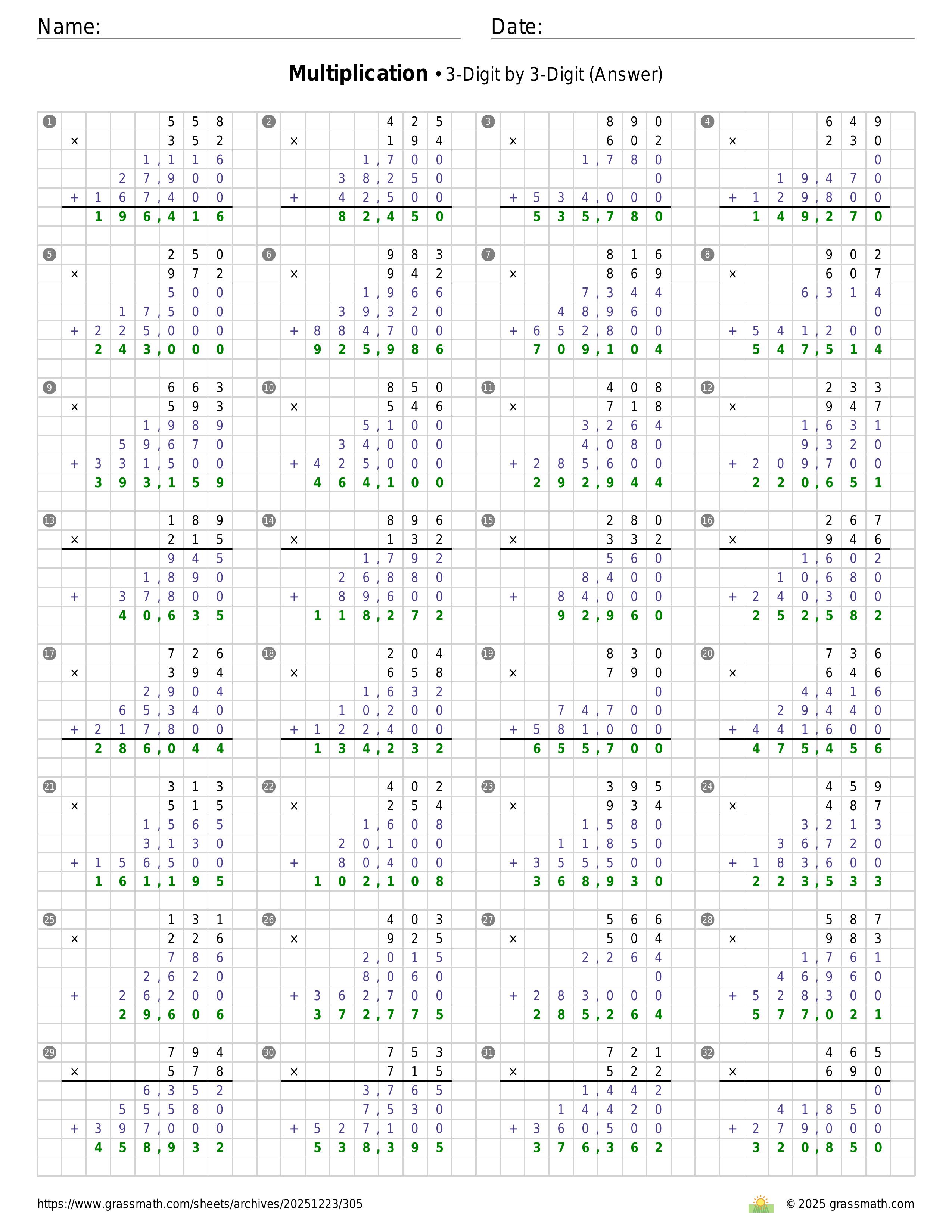 Multiplication 3-Digit by 3-Digit