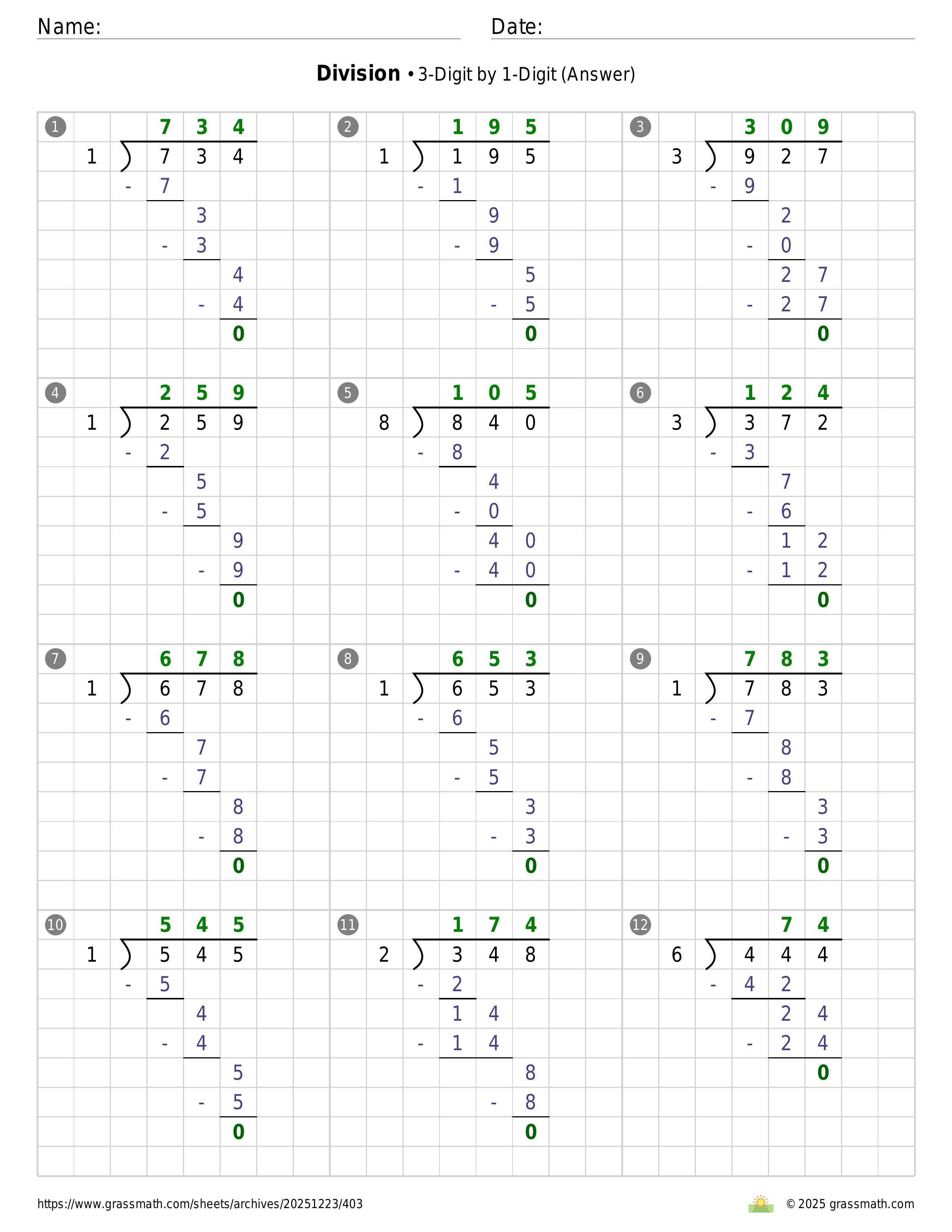 Division 3-Digit by 1-Digit