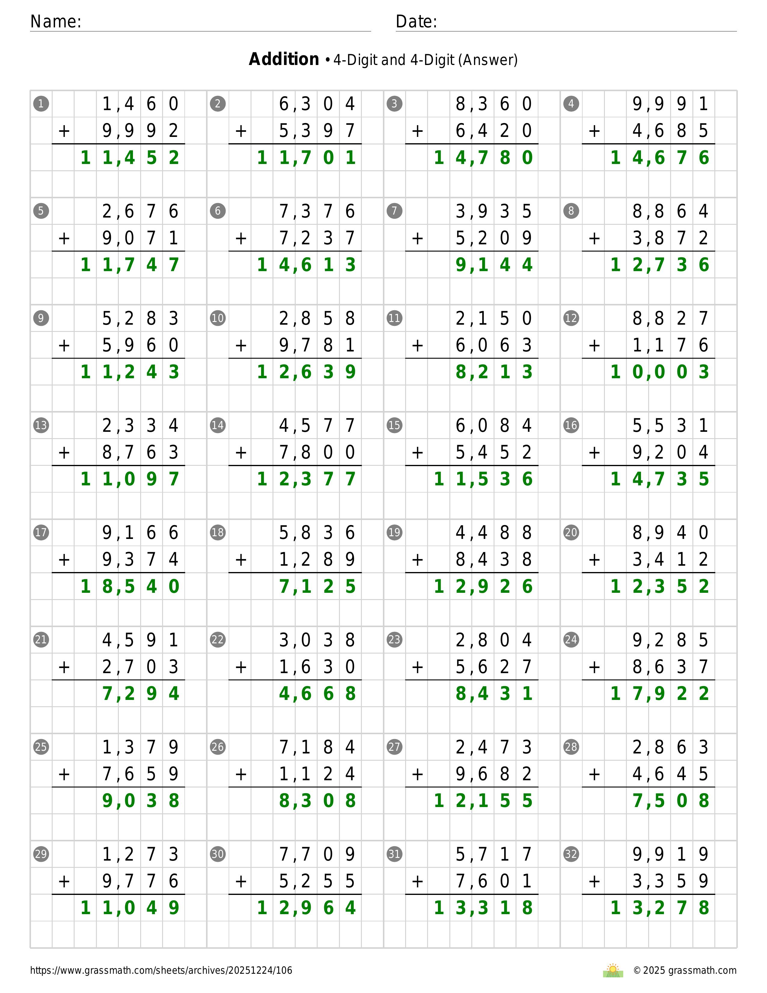 Addition 4-Digit and 4-Digit