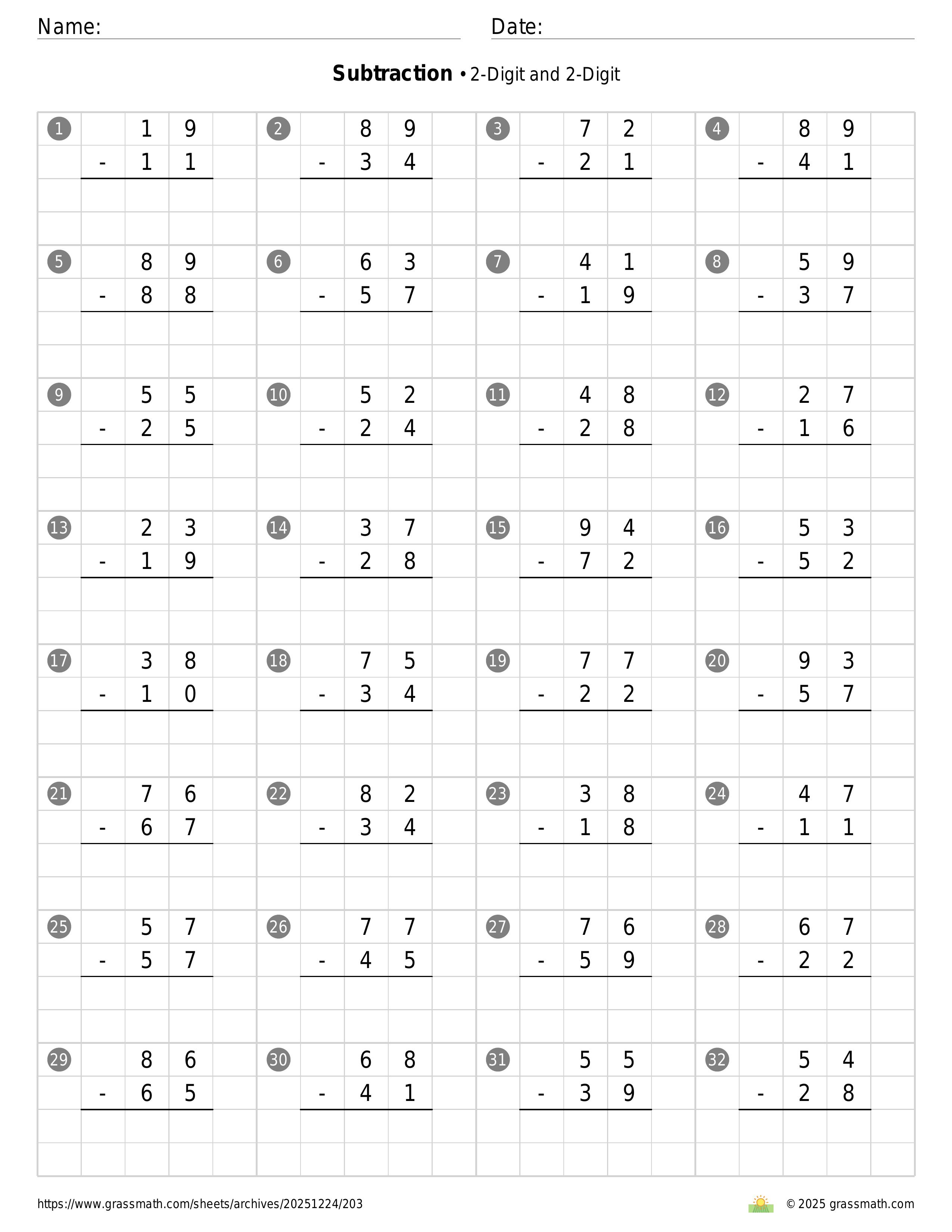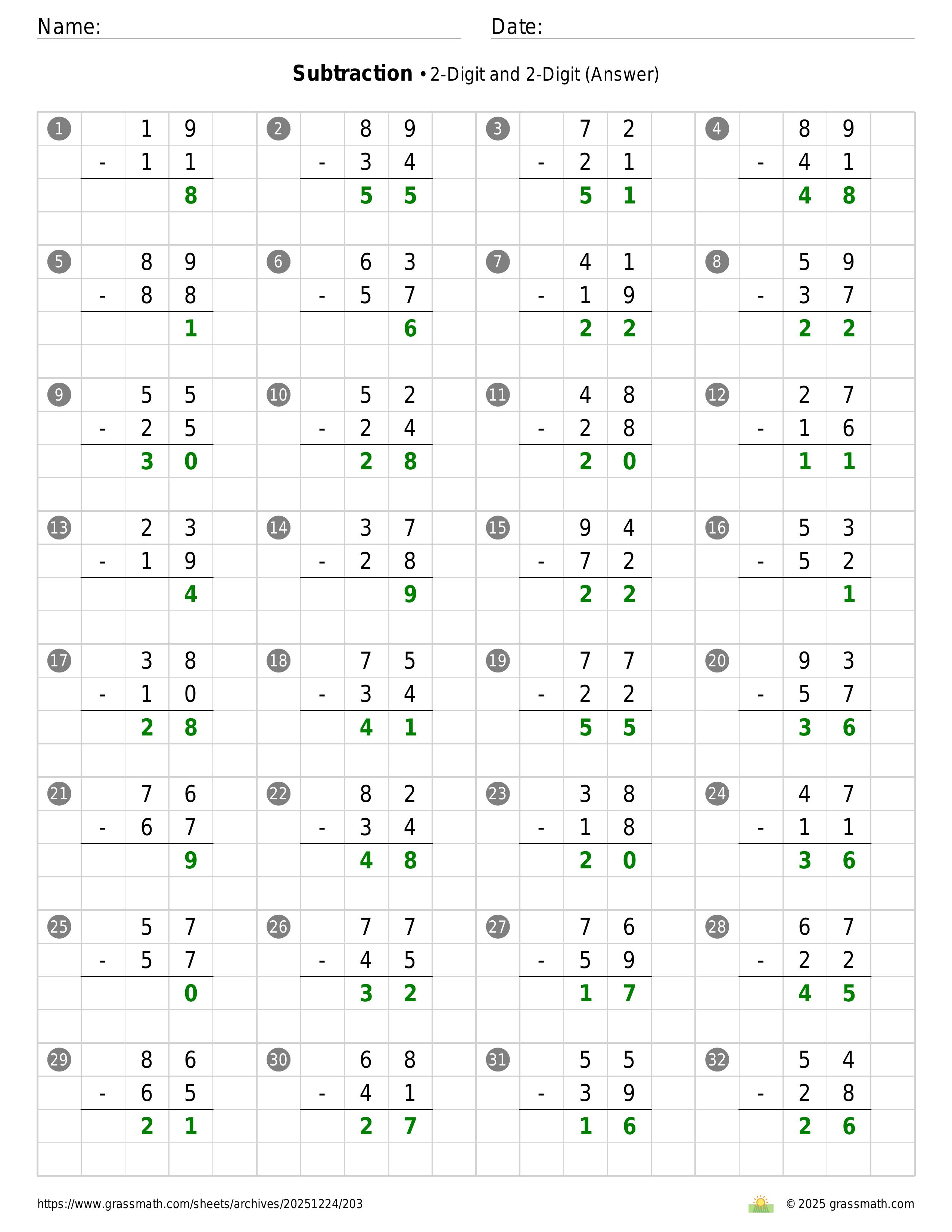 Subtraction 2-Digit and 2-Digit
