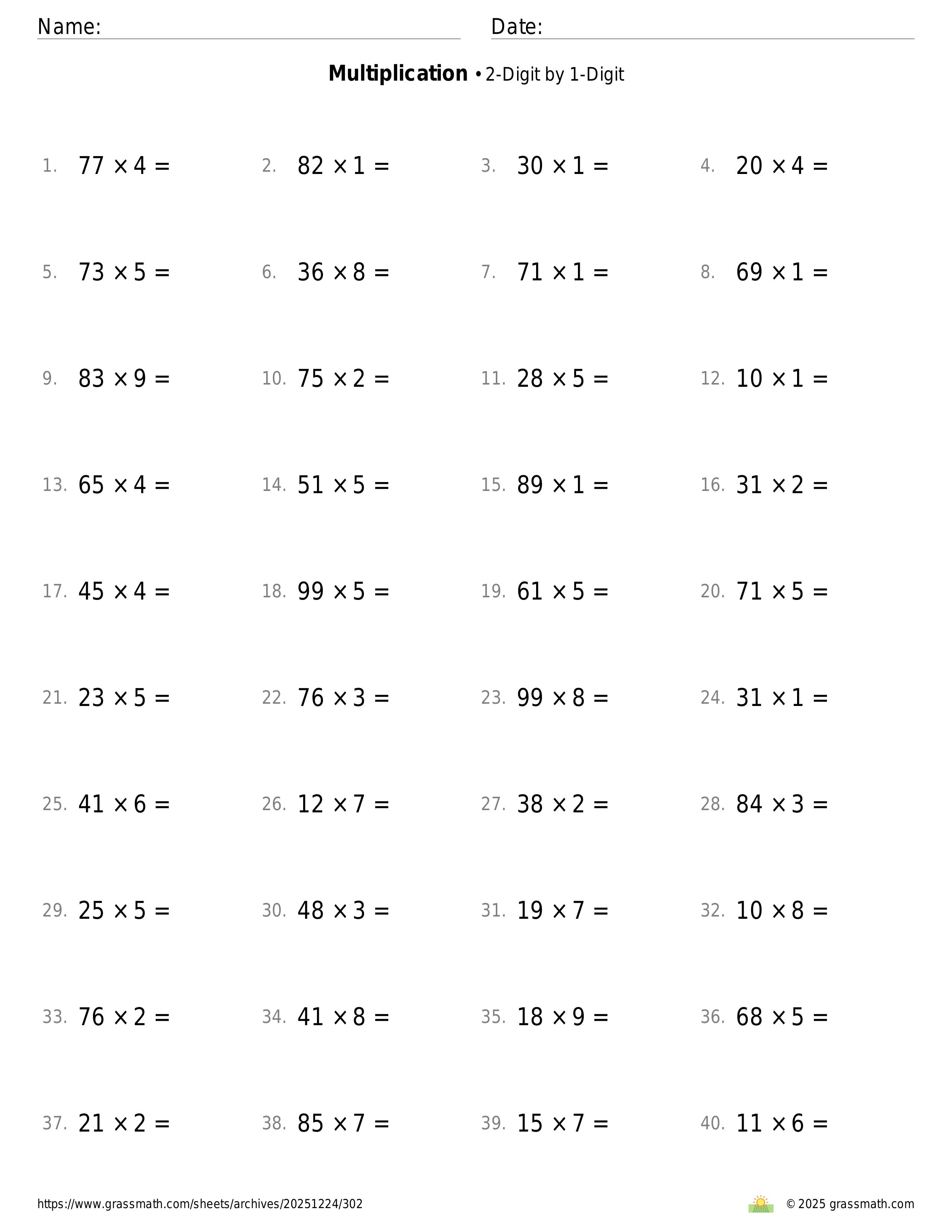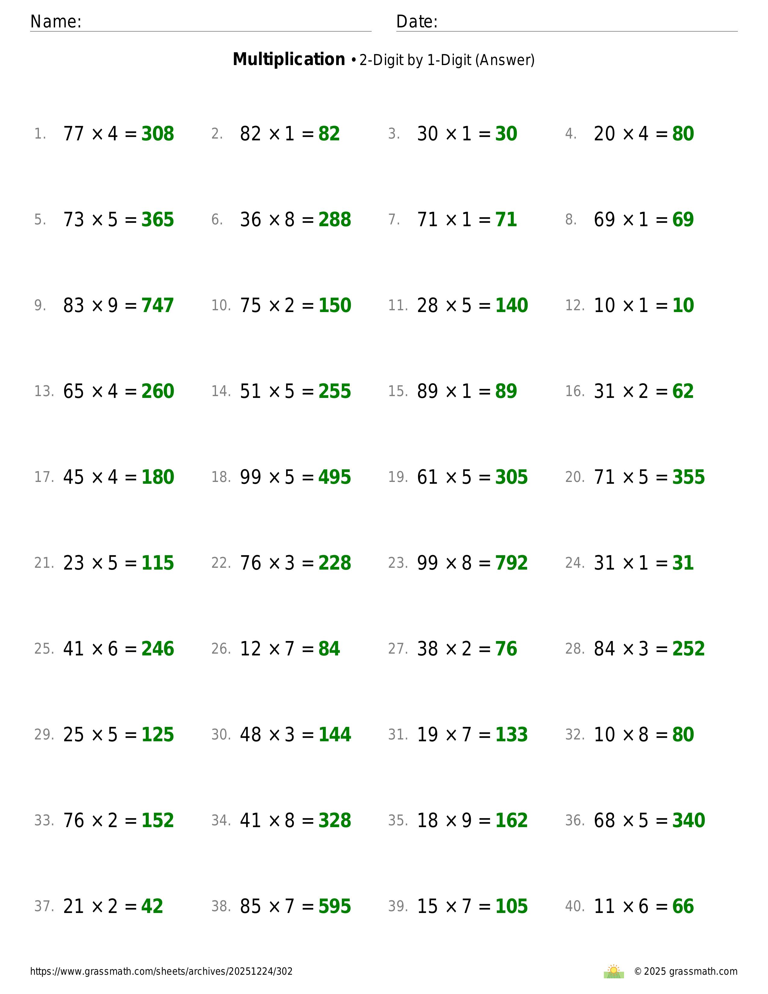 Multiplication 2-Digit by 1-Digit
