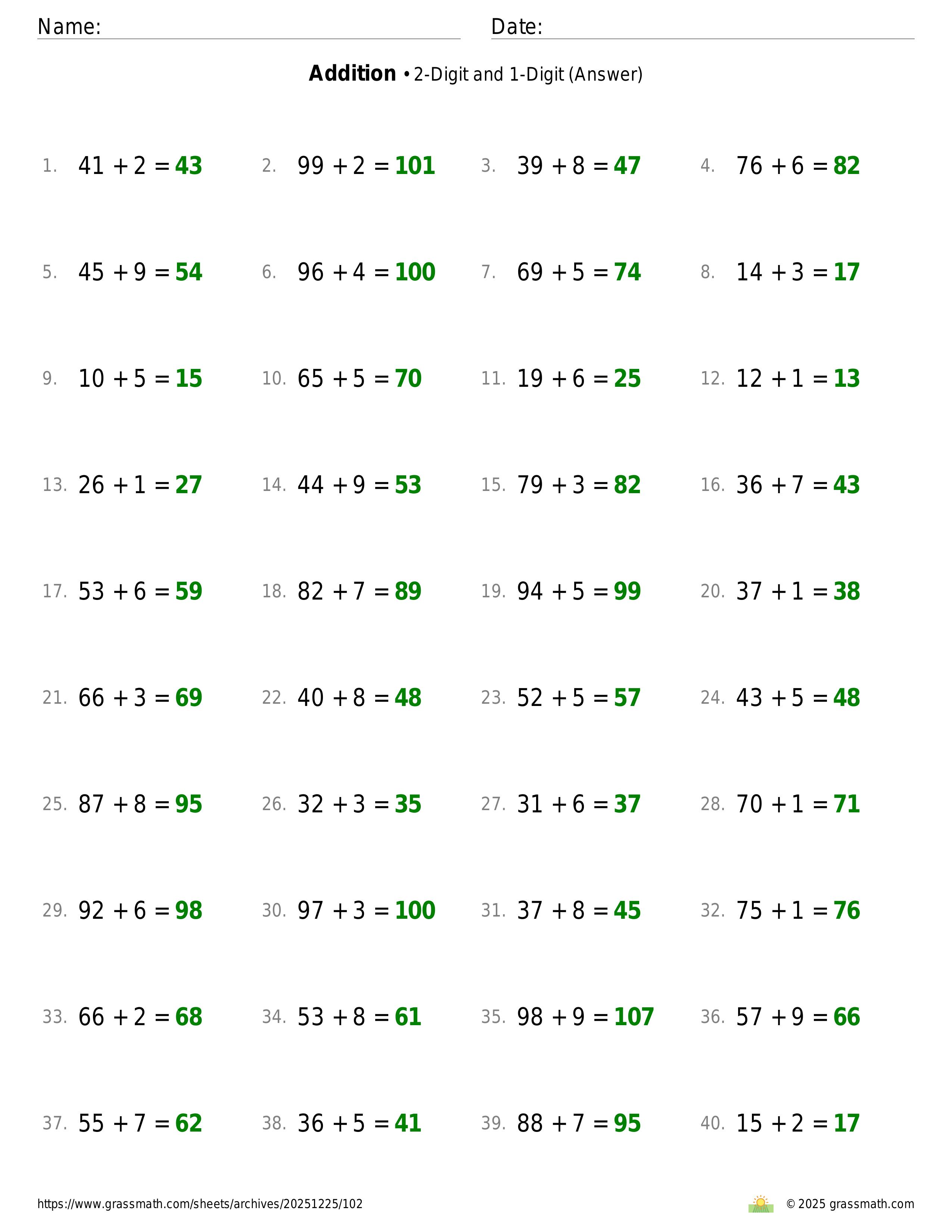 Addition 2-Digit and 1-Digit