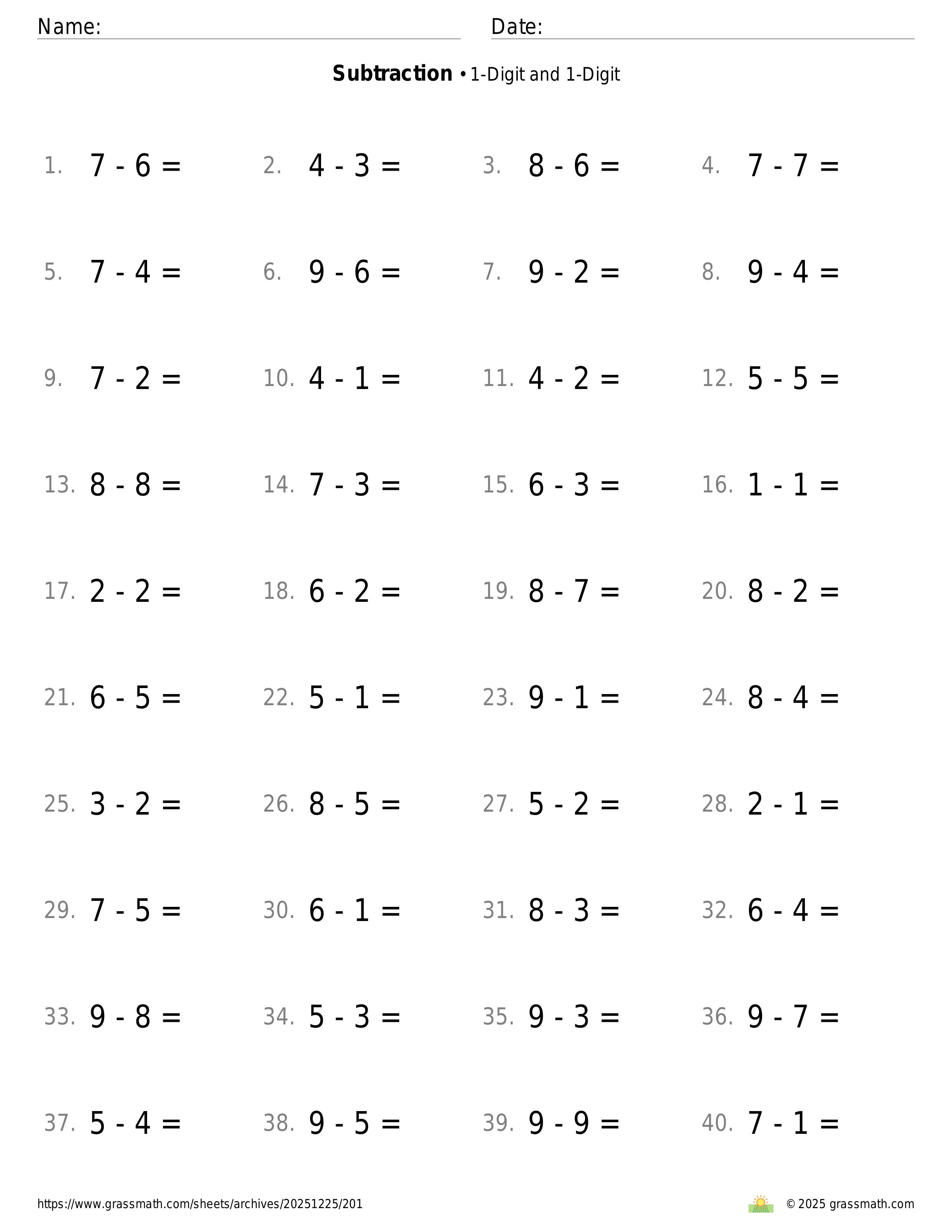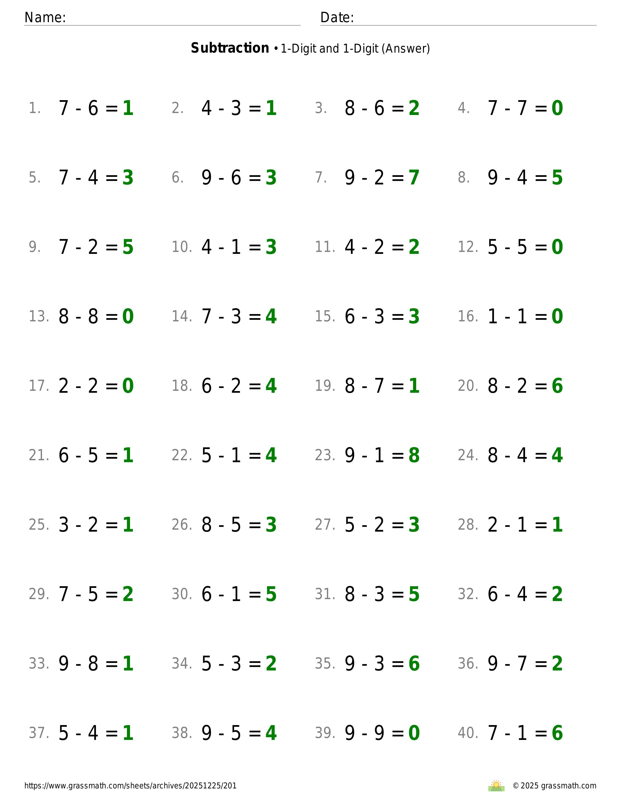 Subtraction 1-Digit and 1-Digit
