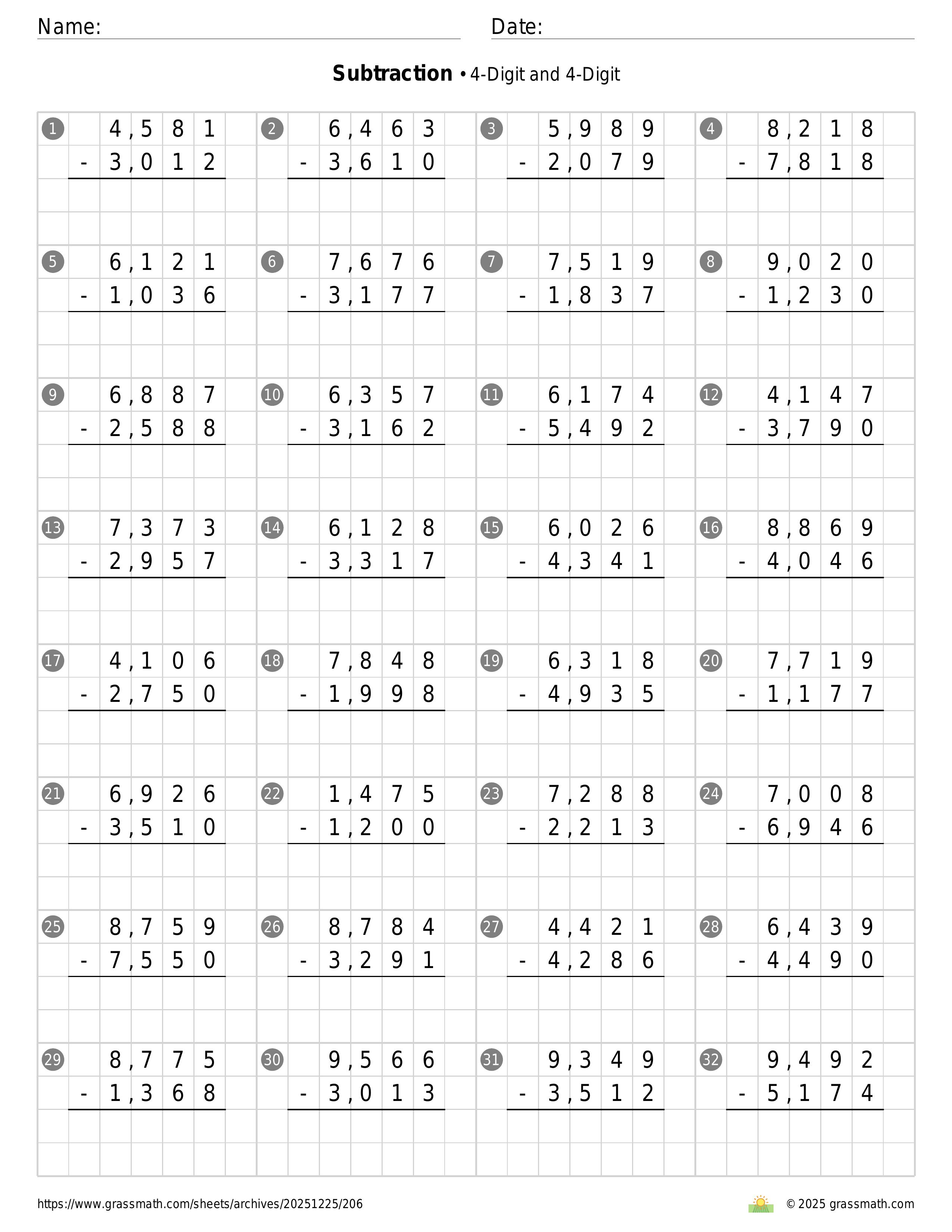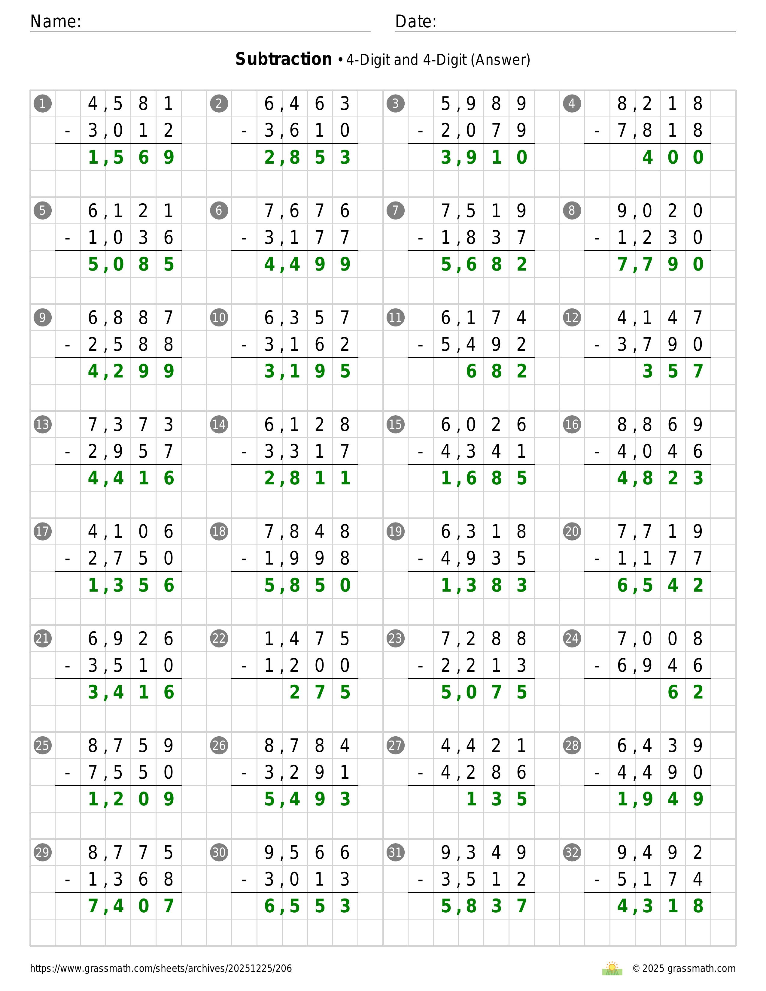 Subtraction 4-Digit and 4-Digit