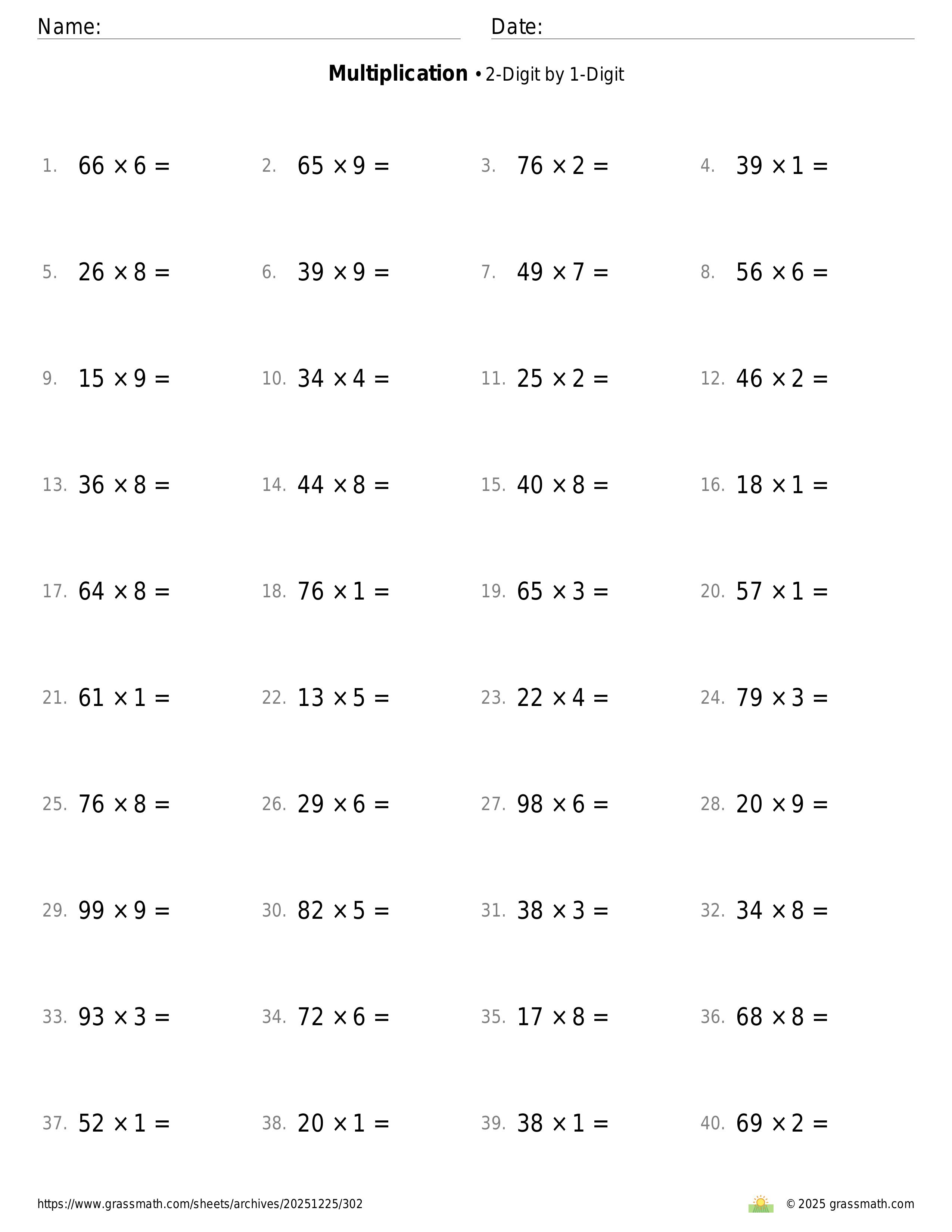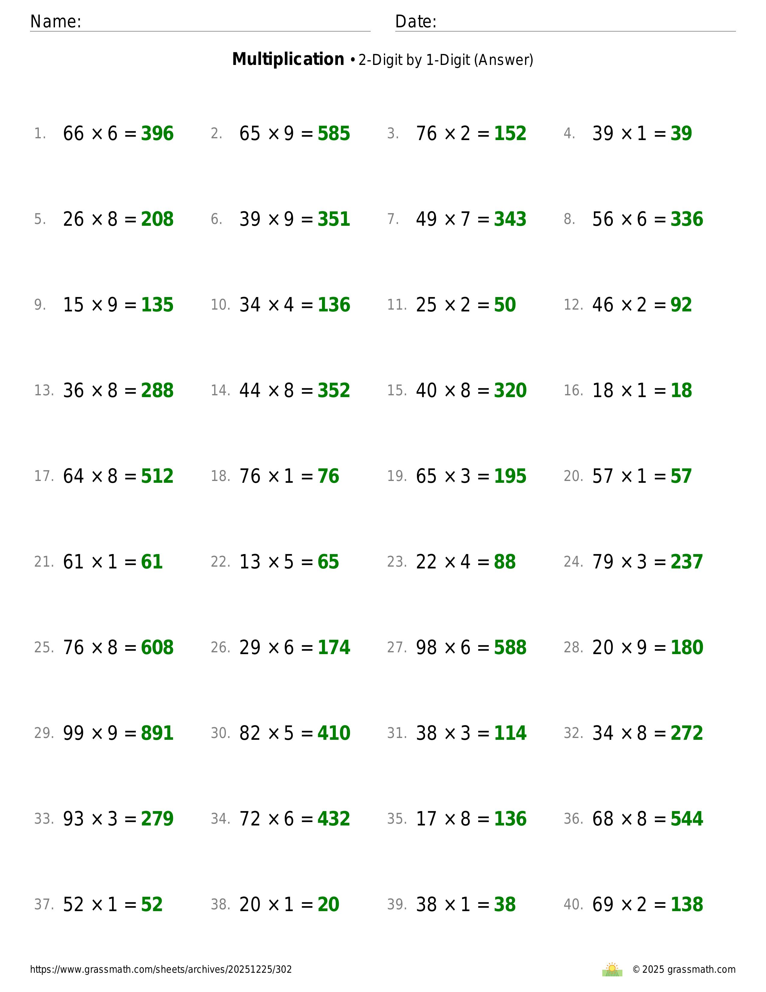 Multiplication 2-Digit by 1-Digit