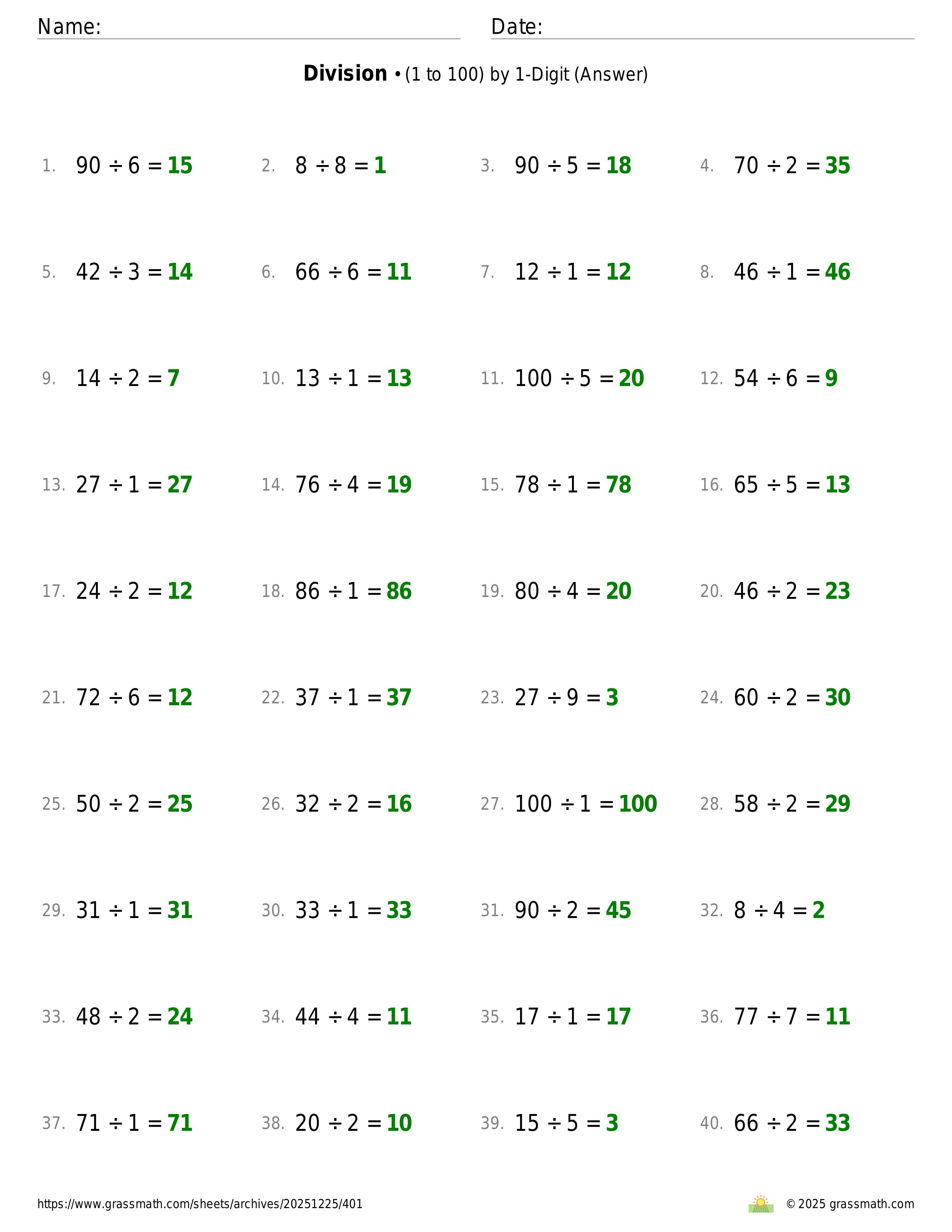 Division (1 to 100) by 1-Digit