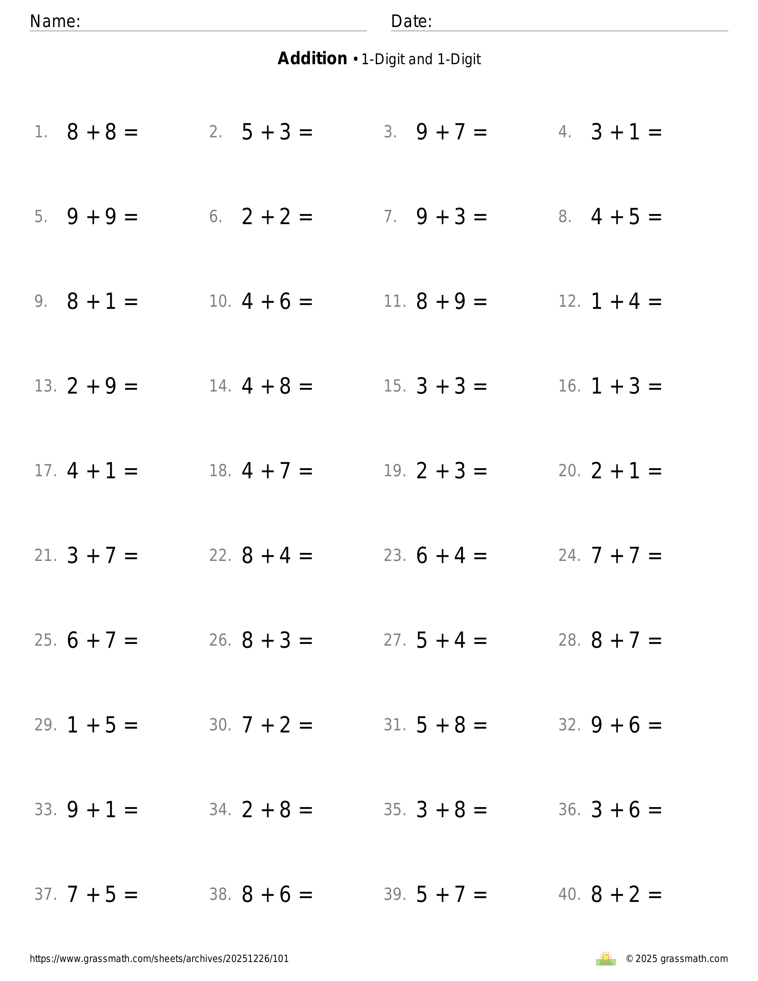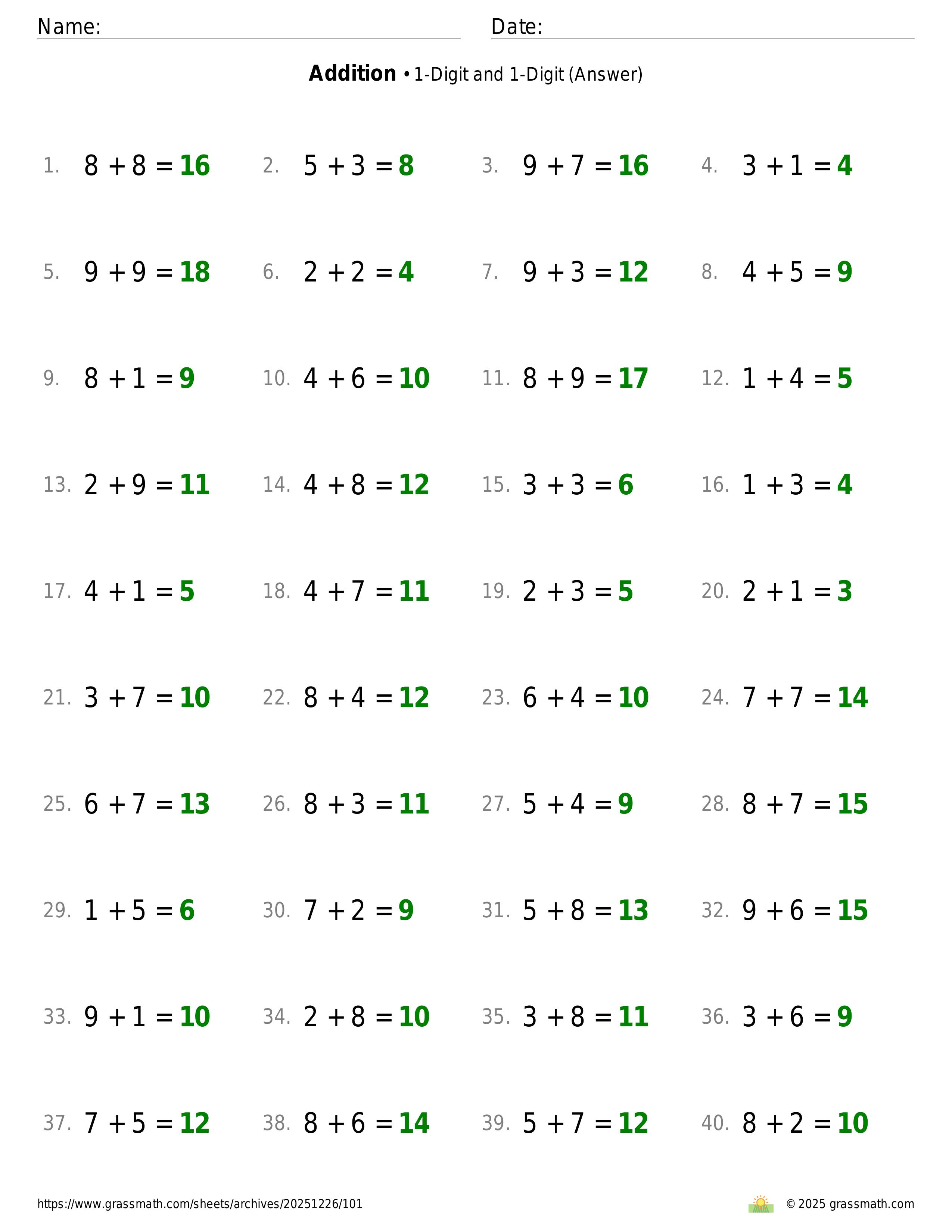 Addition 1-Digit and 1-Digit