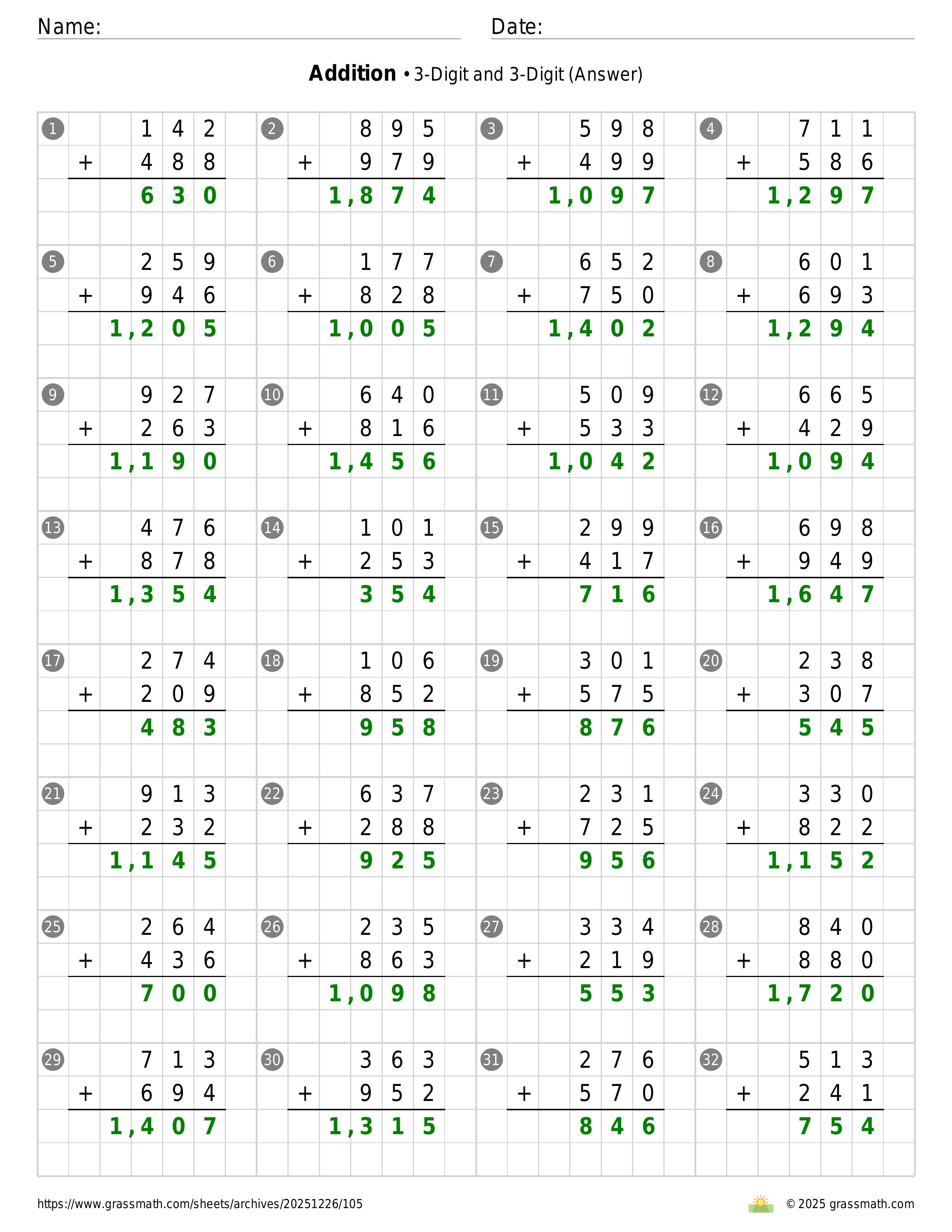 Addition 3-Digit and 3-Digit