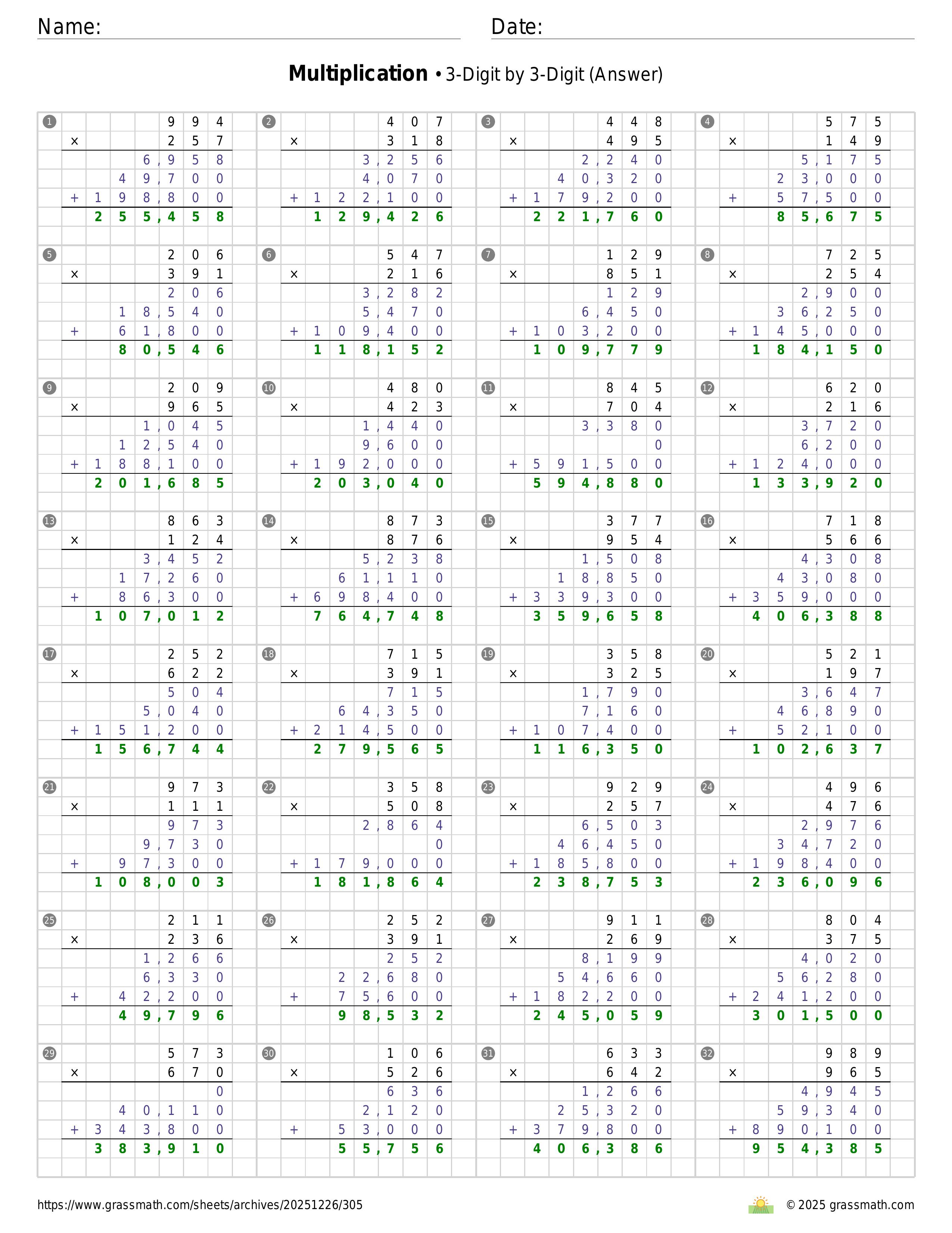 Multiplication 3-Digit by 3-Digit