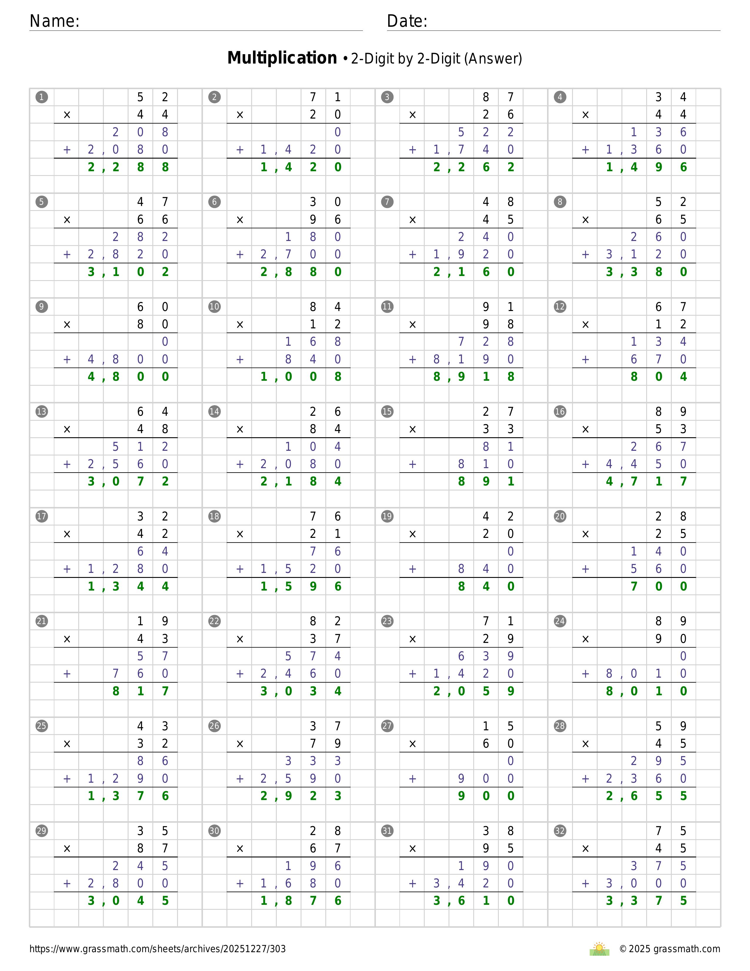 Multiplication 2-Digit by 2-Digit