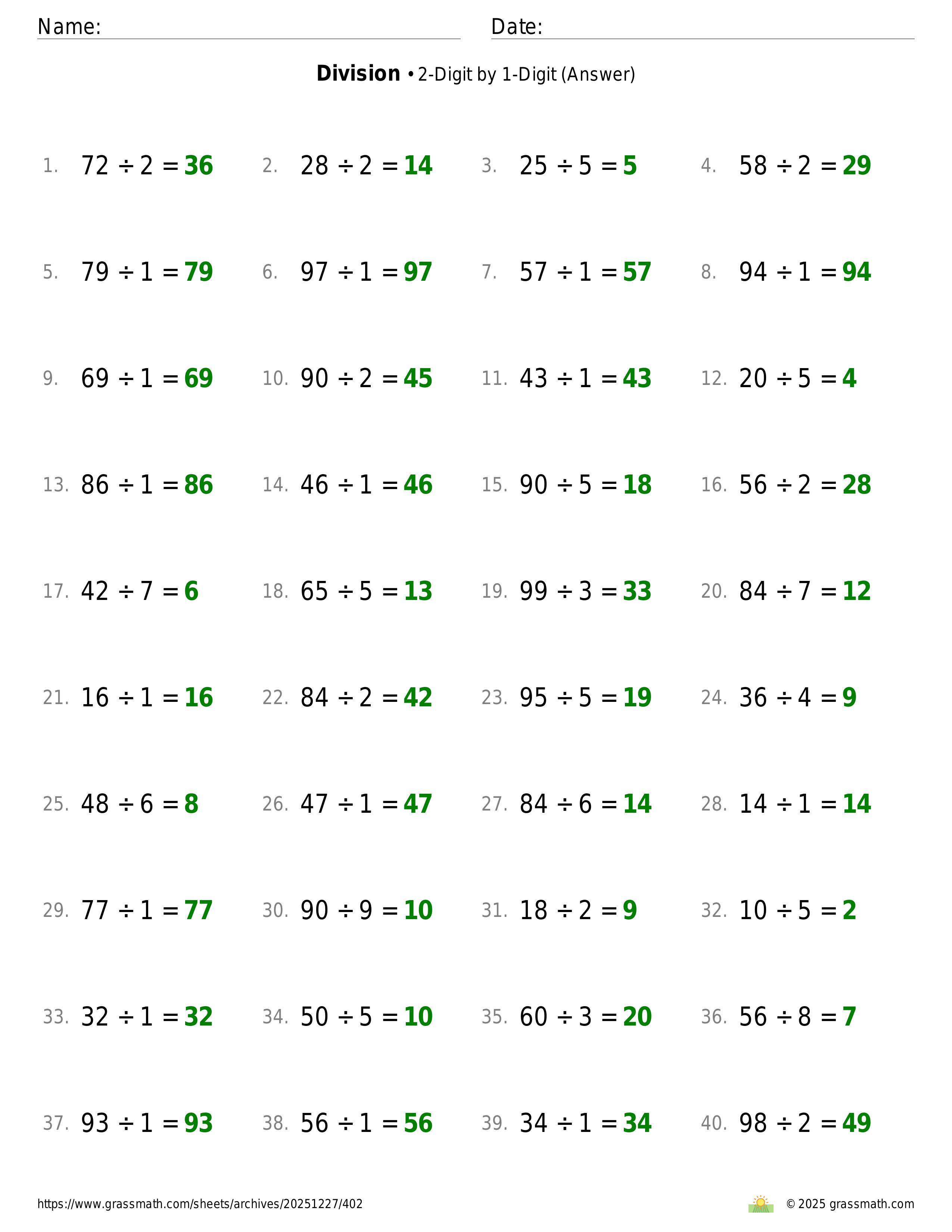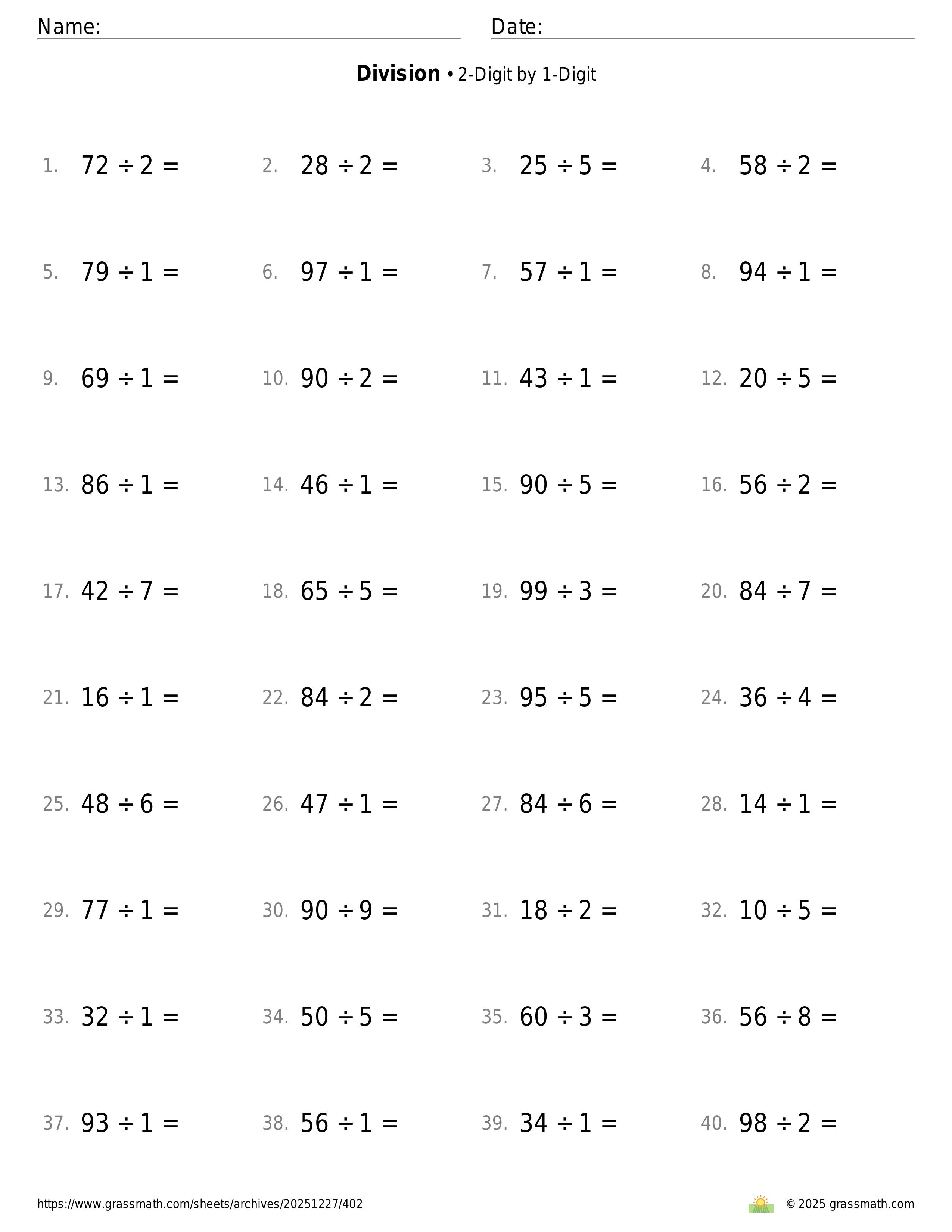 Division 2-Digit by 1-Digit