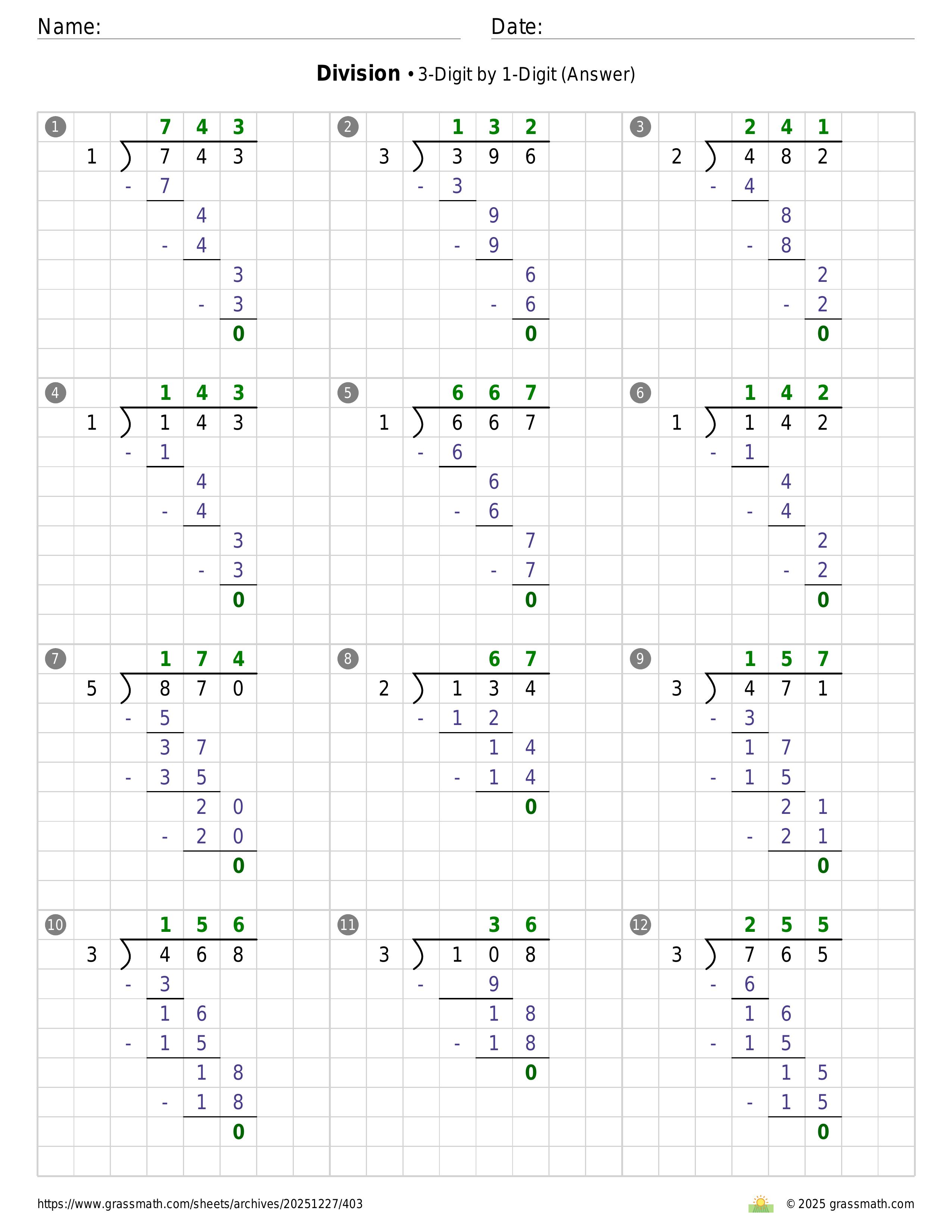 Division 3-Digit by 1-Digit