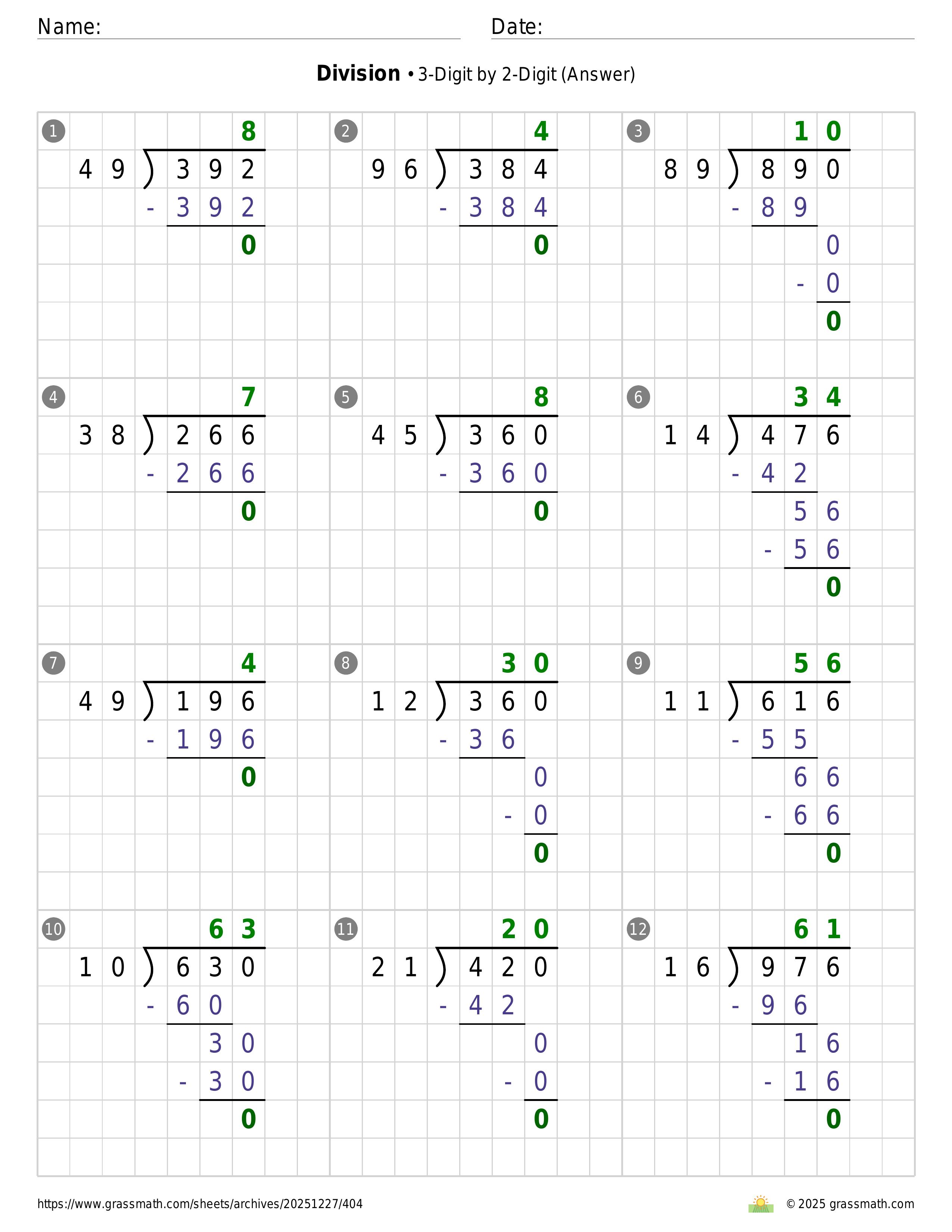 Division 3-Digit by 2-Digit