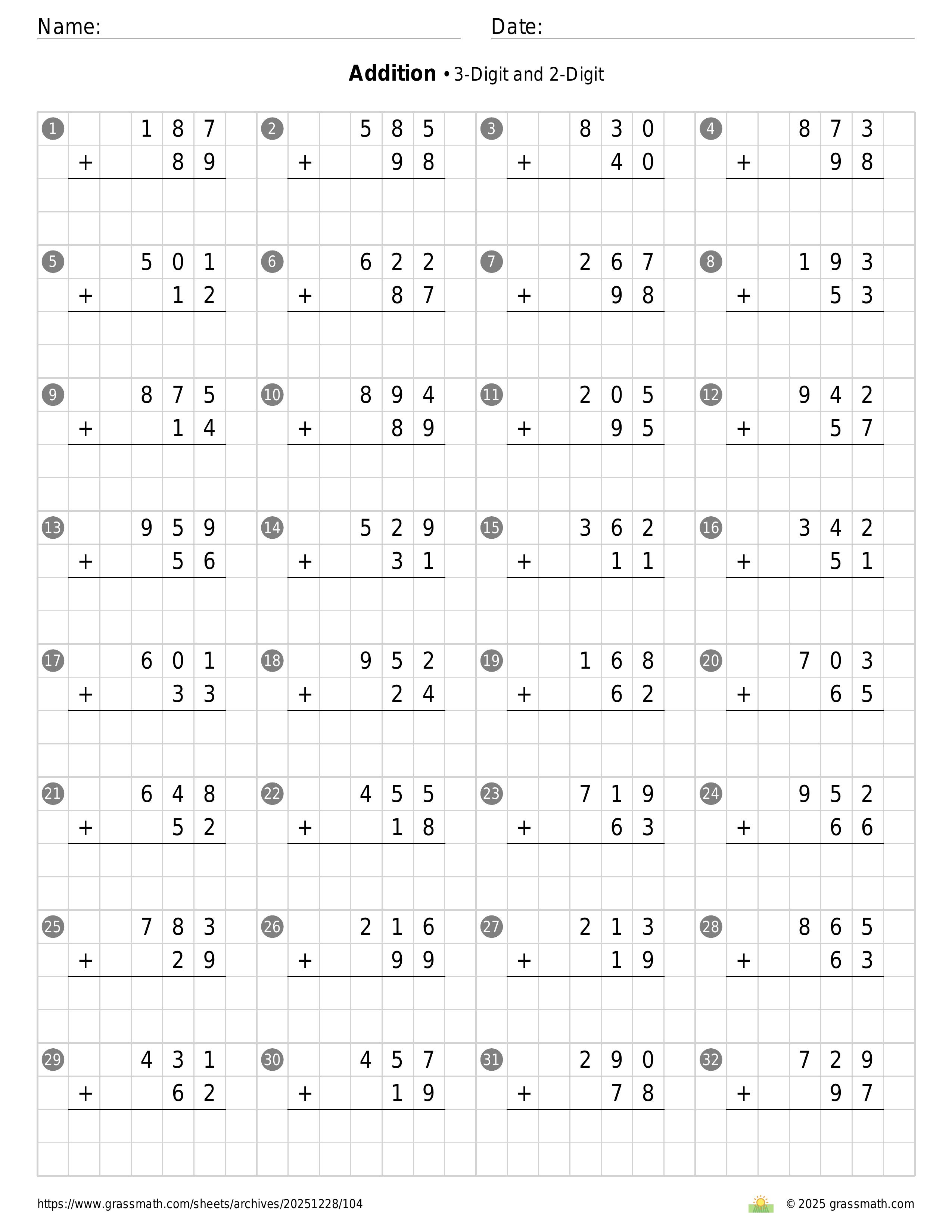 Addition 3-Digit and 2-Digit