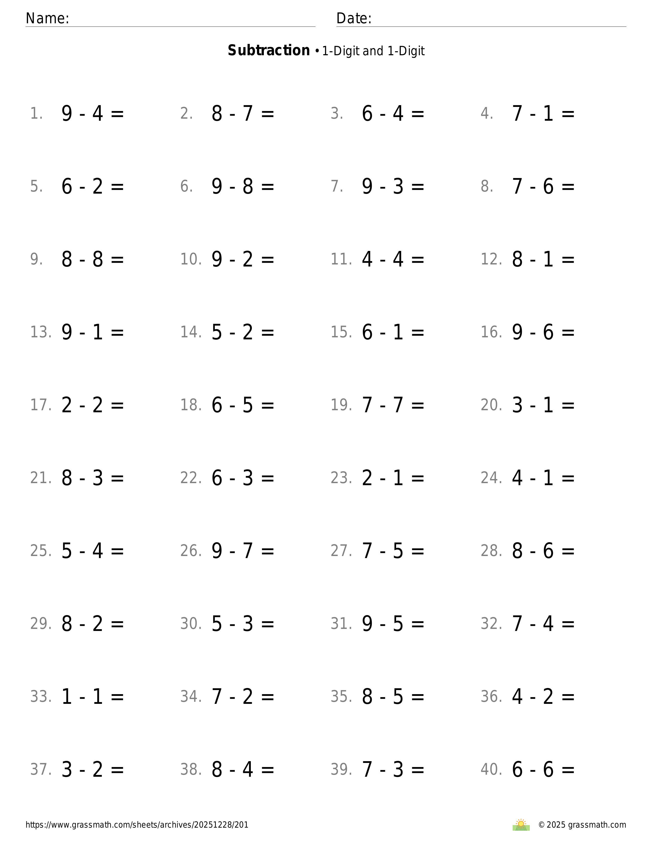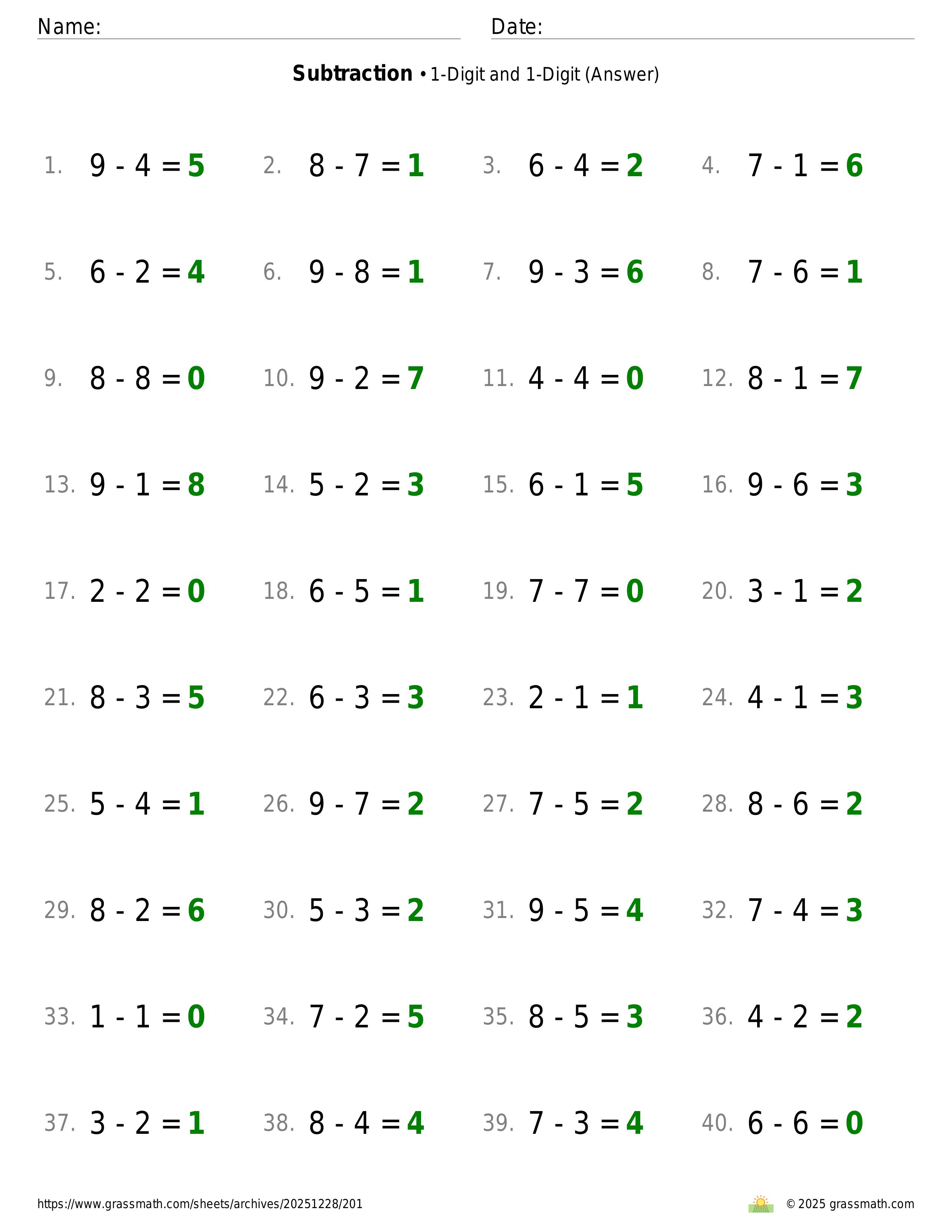 Subtraction 1-Digit and 1-Digit