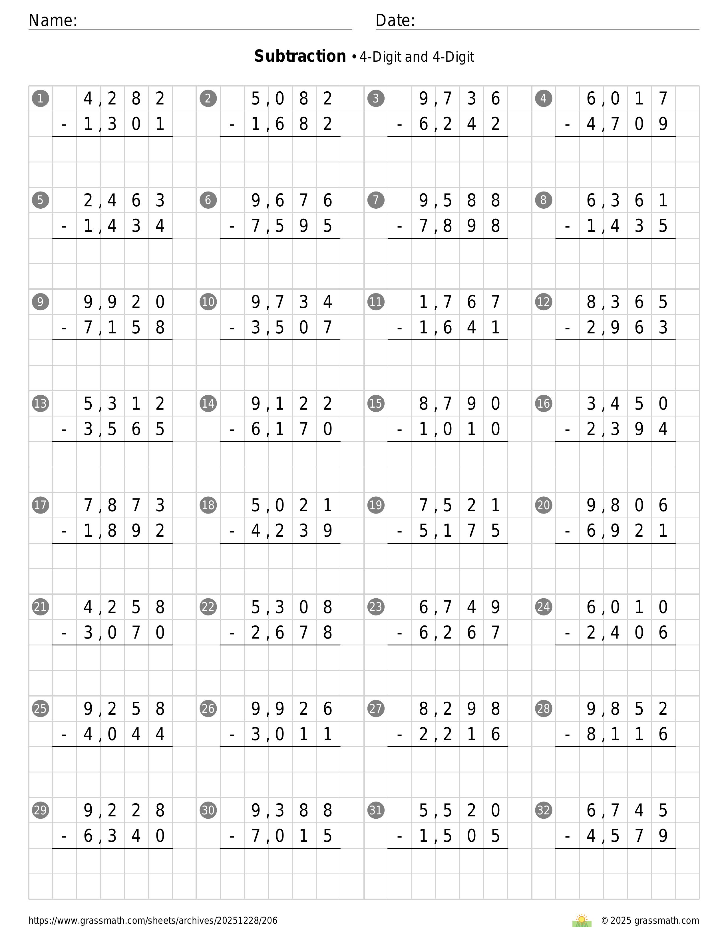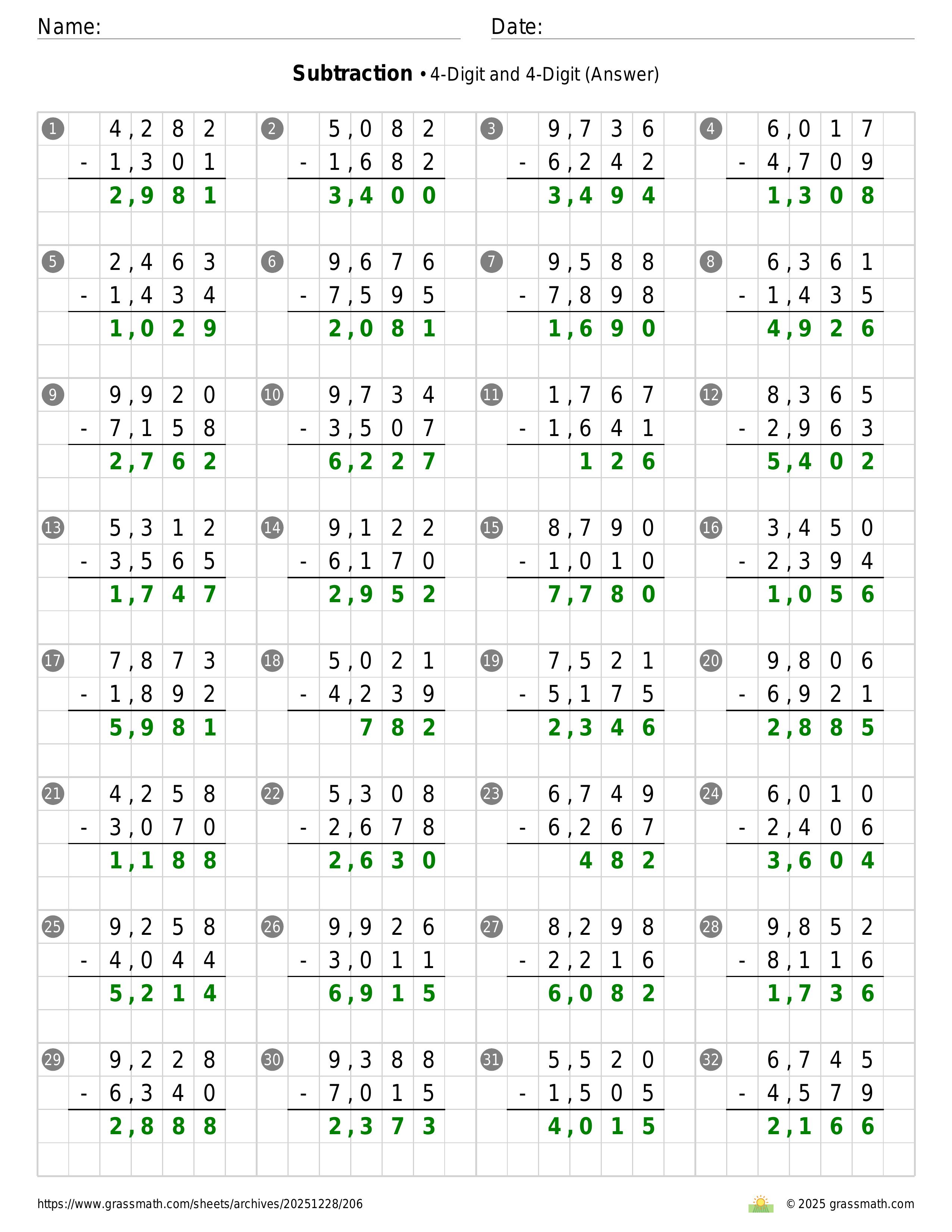 Subtraction 4-Digit and 4-Digit