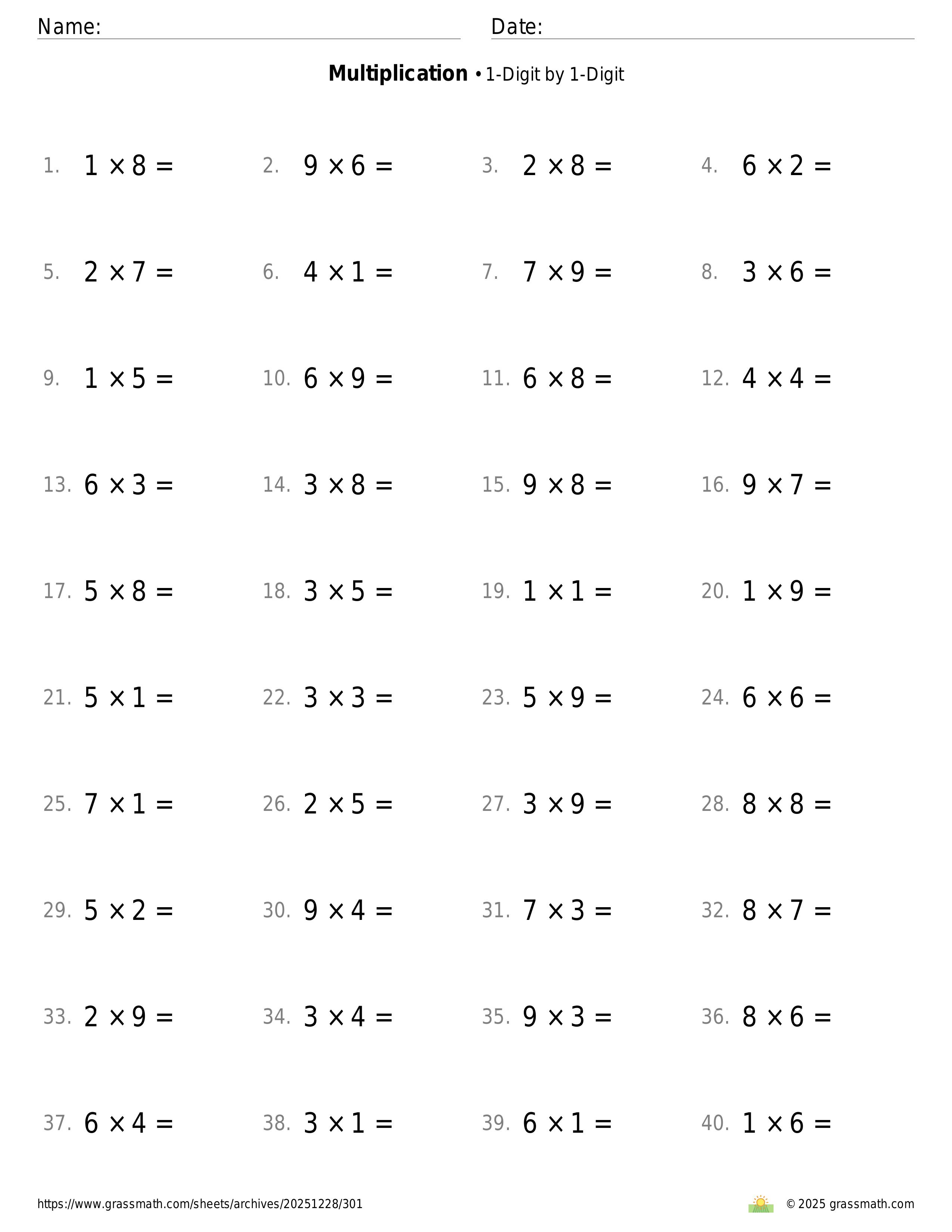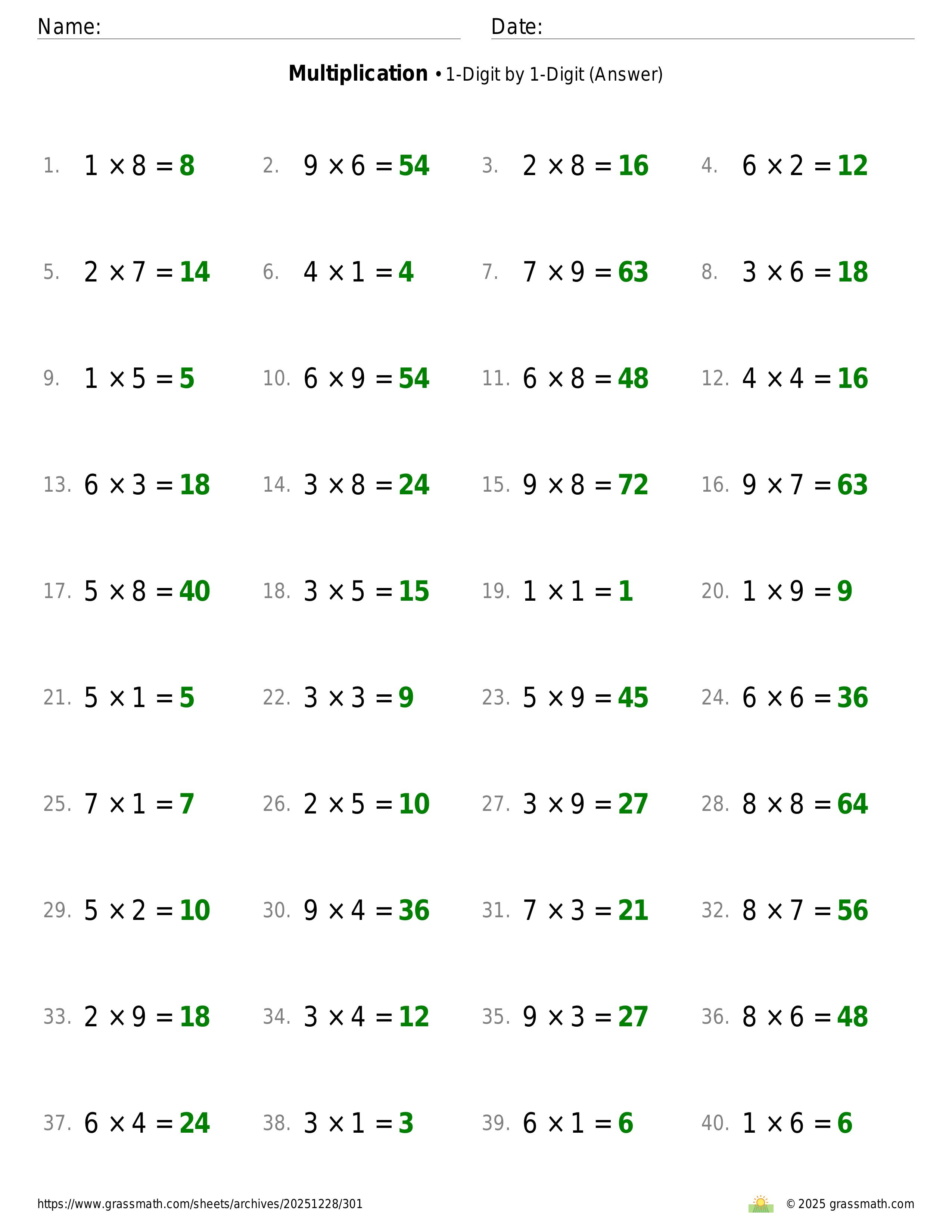 Multiplication 1-Digit by 1-Digit