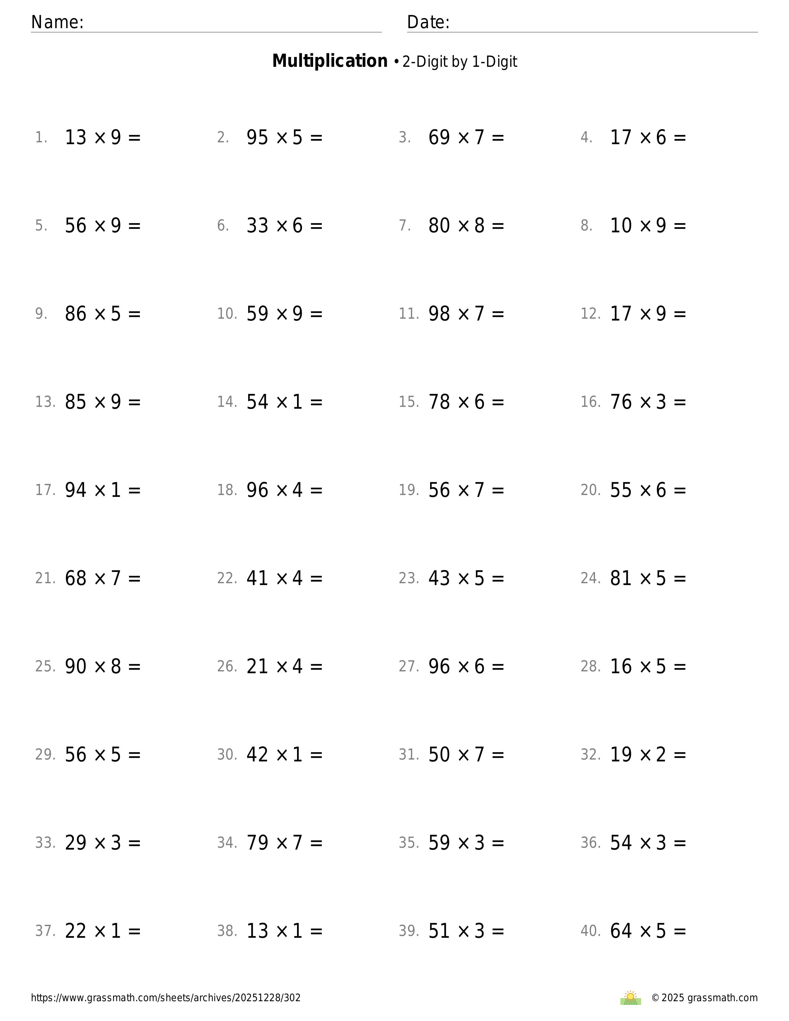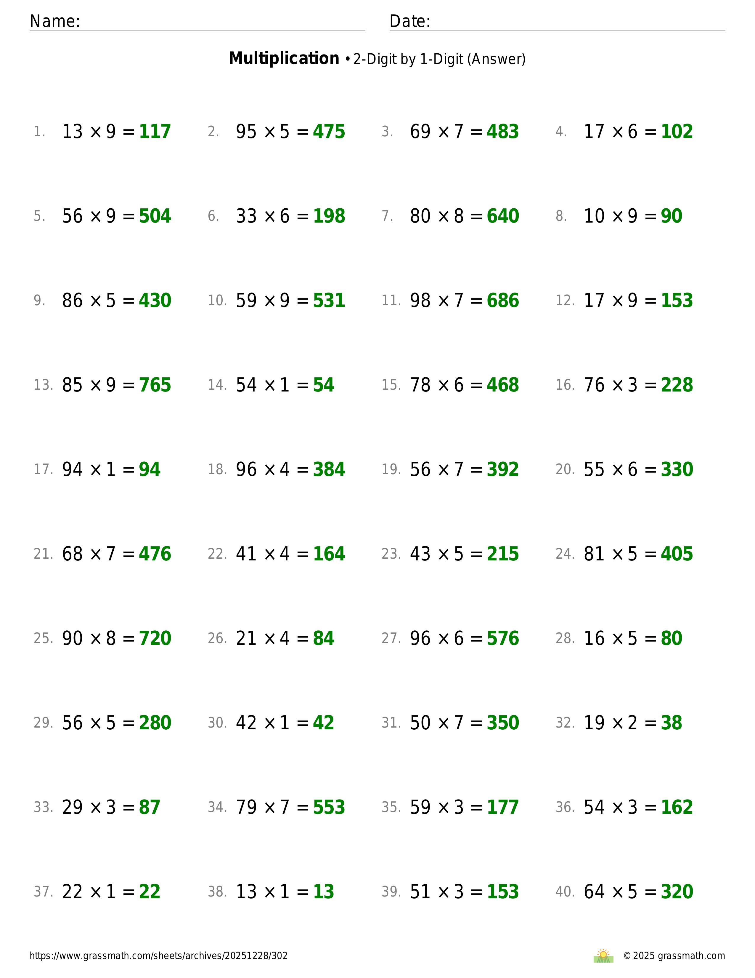 Multiplication 2-Digit by 1-Digit