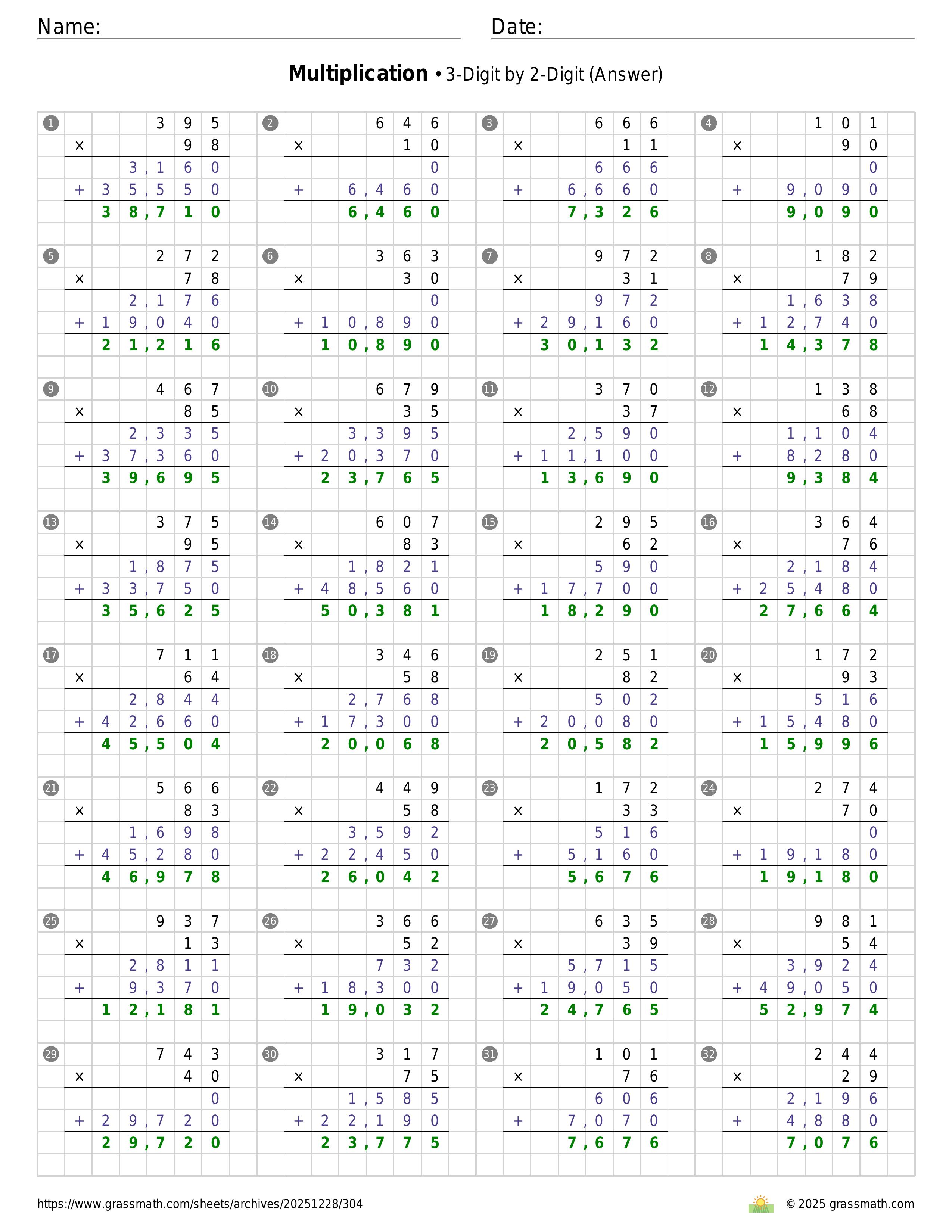 Multiplication 3-Digit by 2-Digit