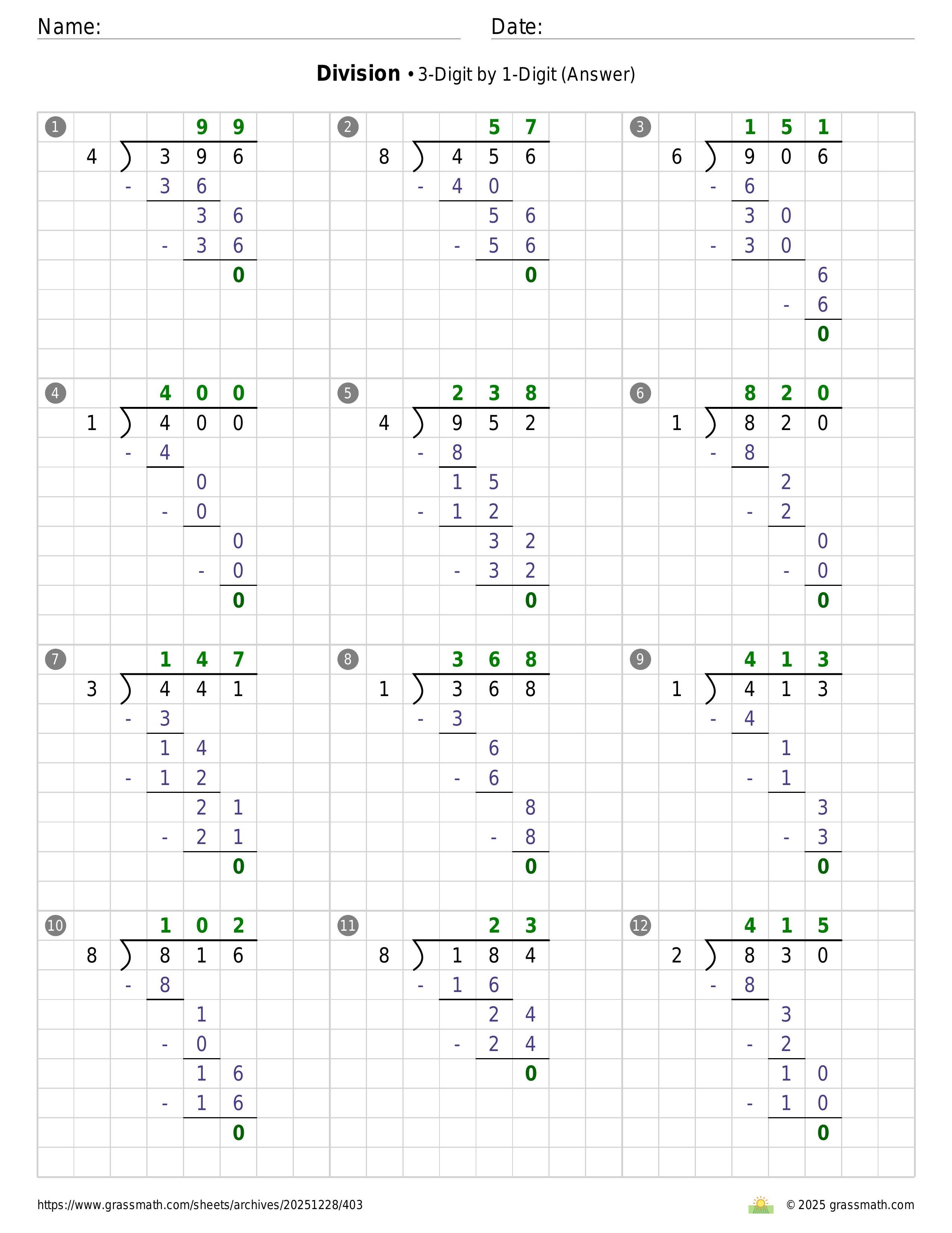 Division 3-Digit by 1-Digit