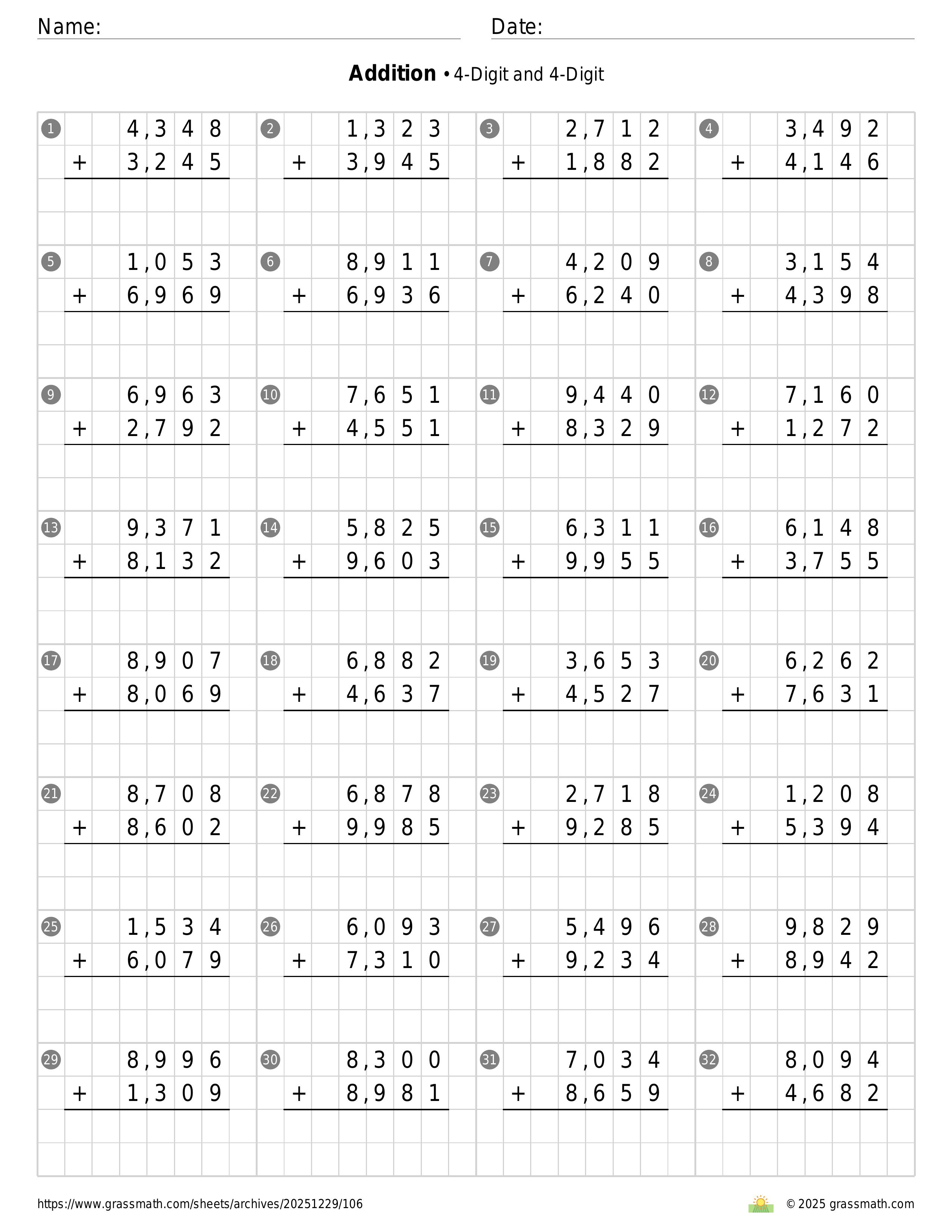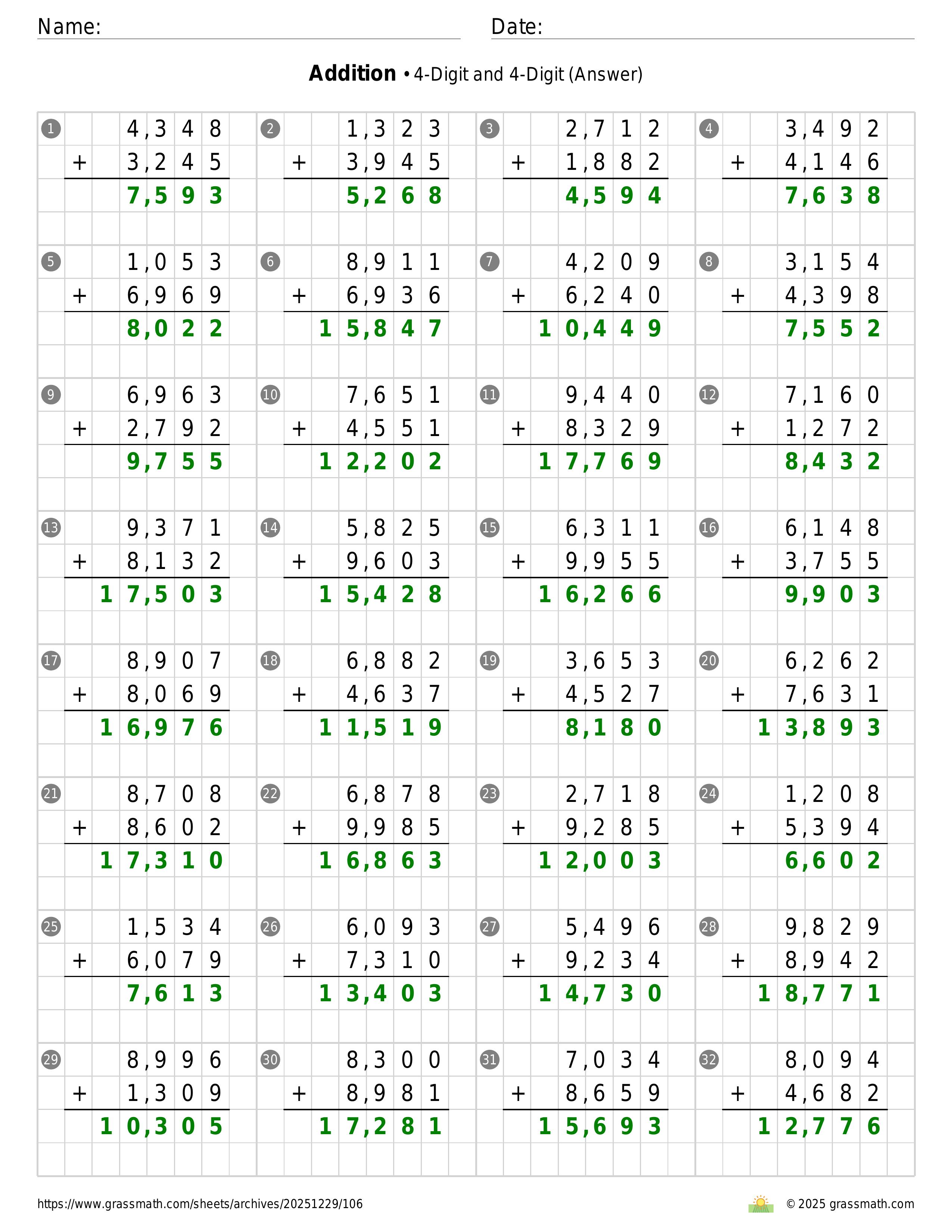 Addition 4-Digit and 4-Digit