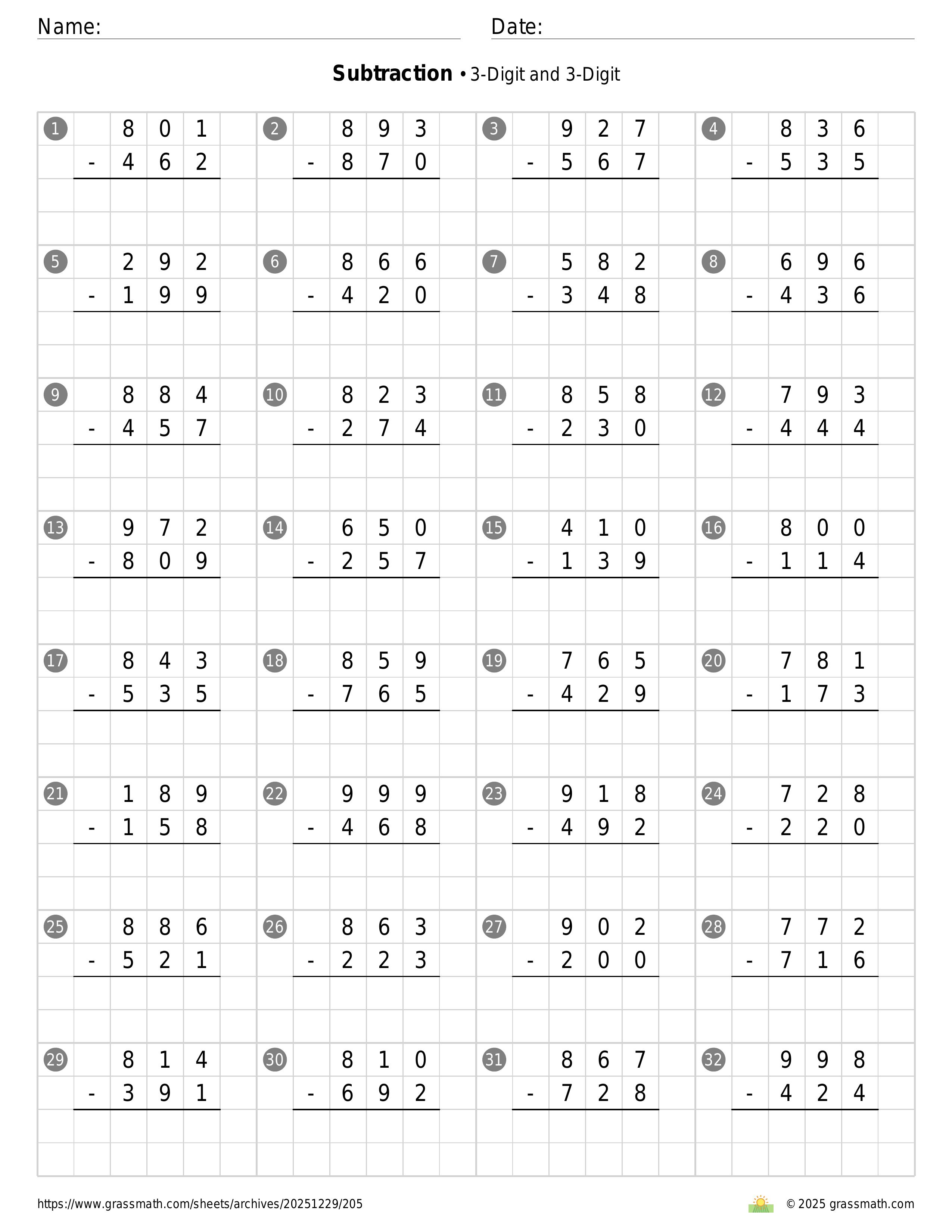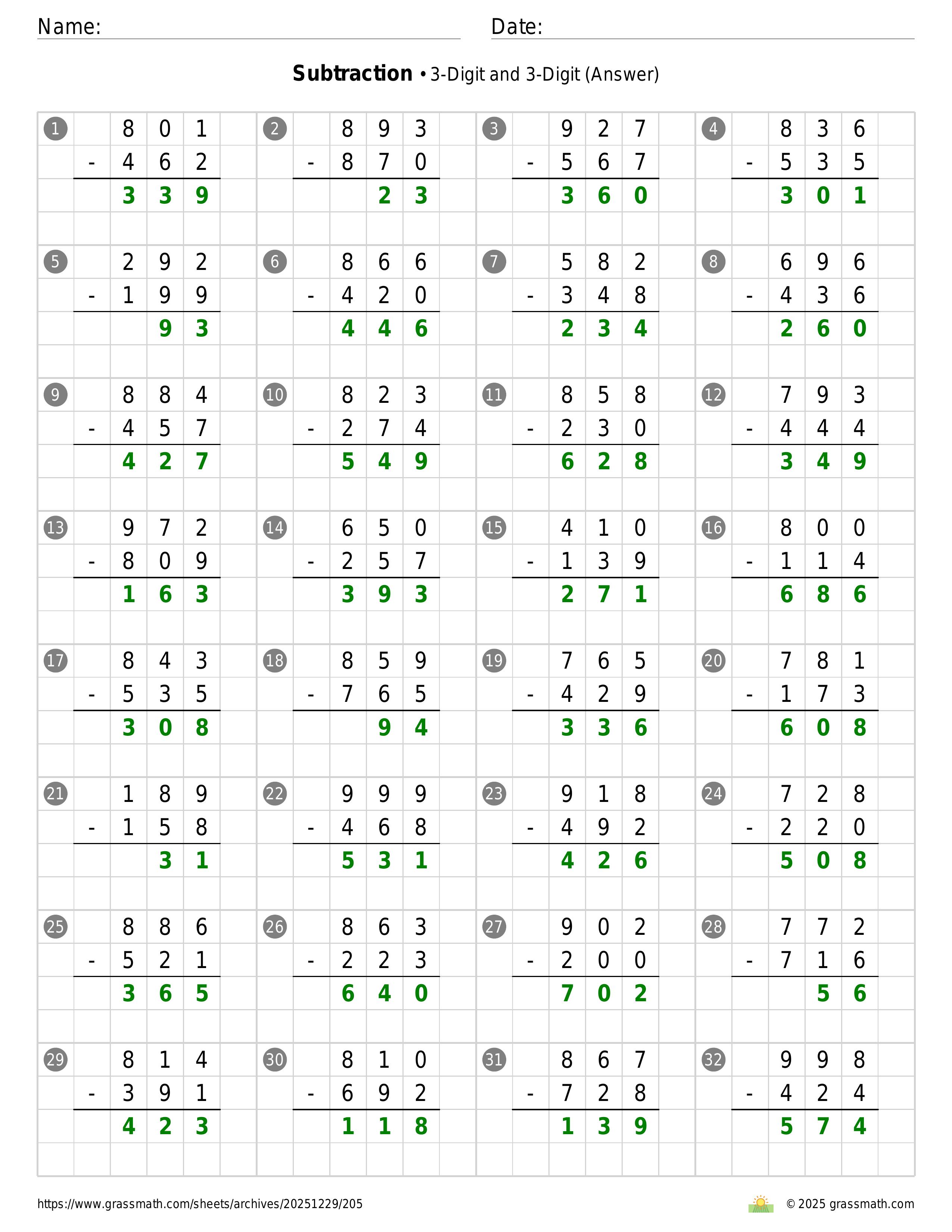 Subtraction 3-Digit and 3-Digit