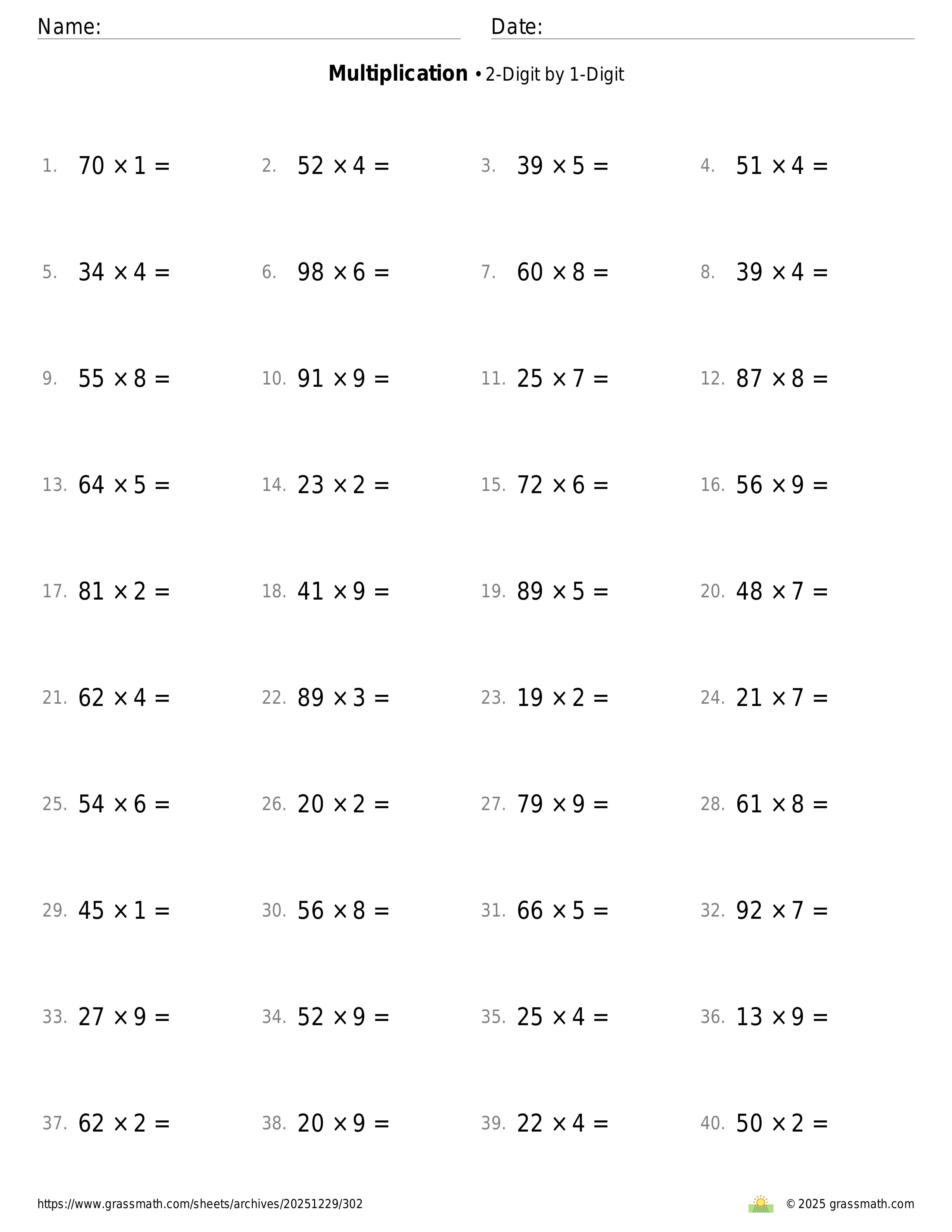 Multiplication 2-Digit by 1-Digit