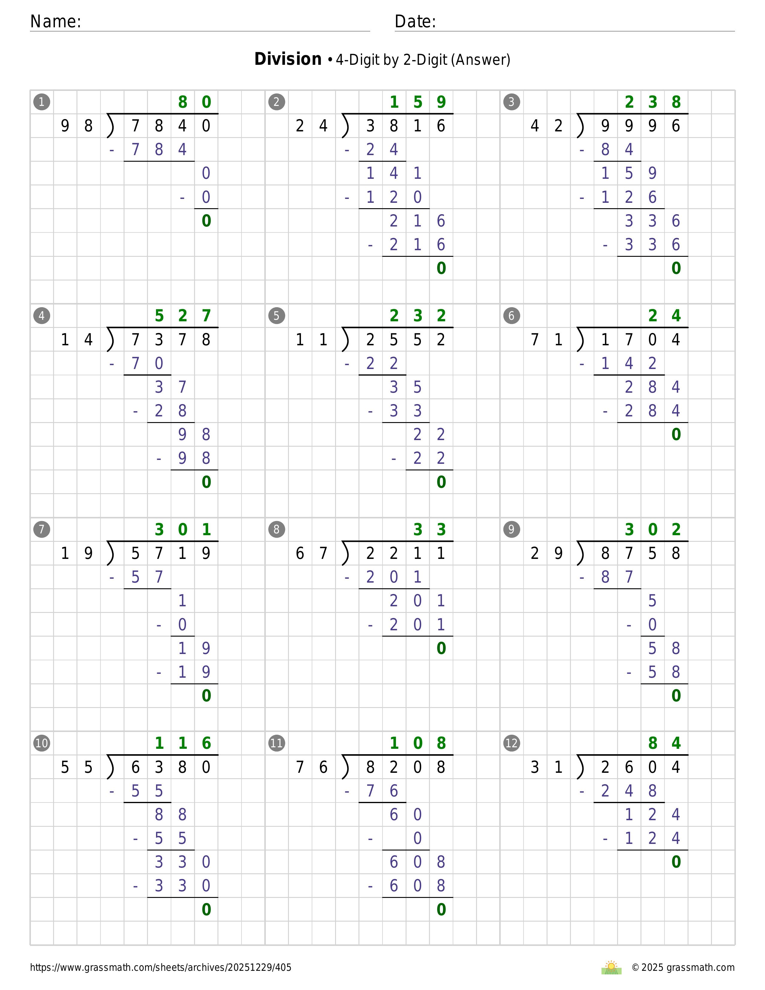 Division 4-Digit by 2-Digit
