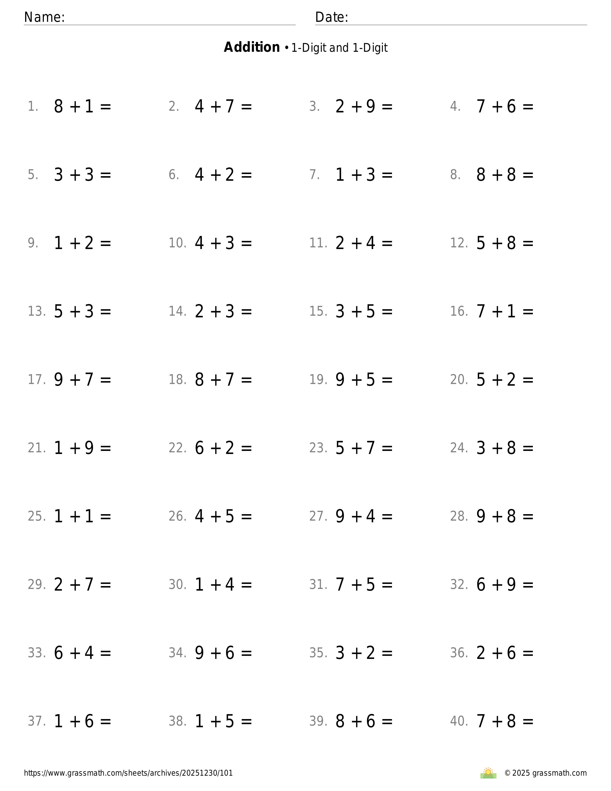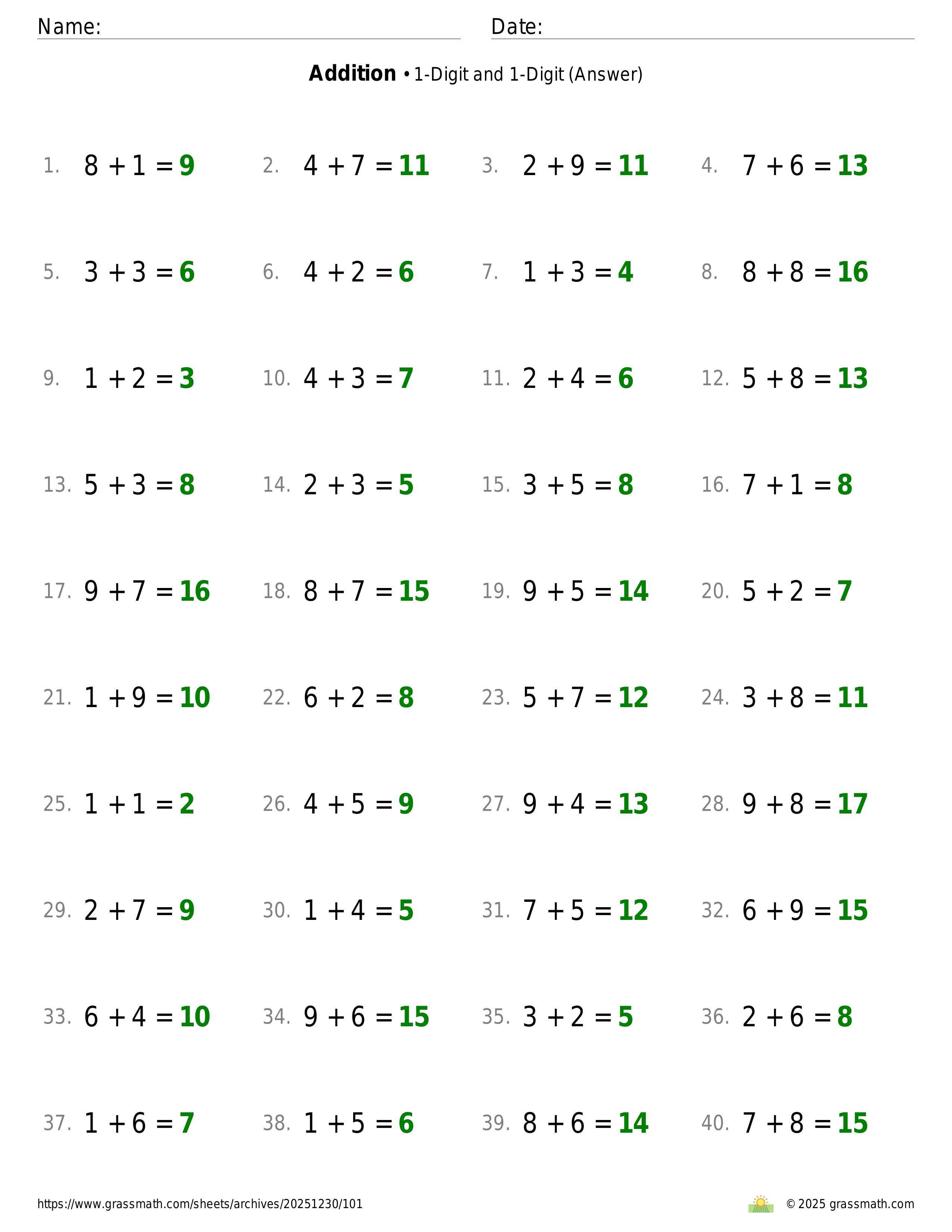 Addition 1-Digit and 1-Digit