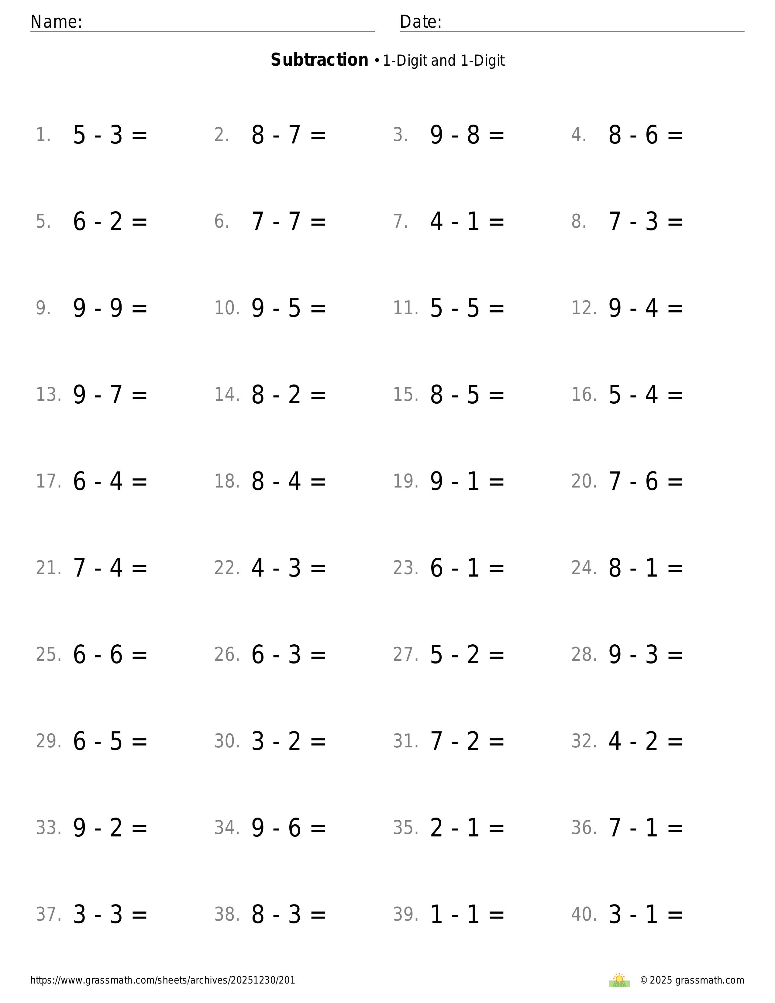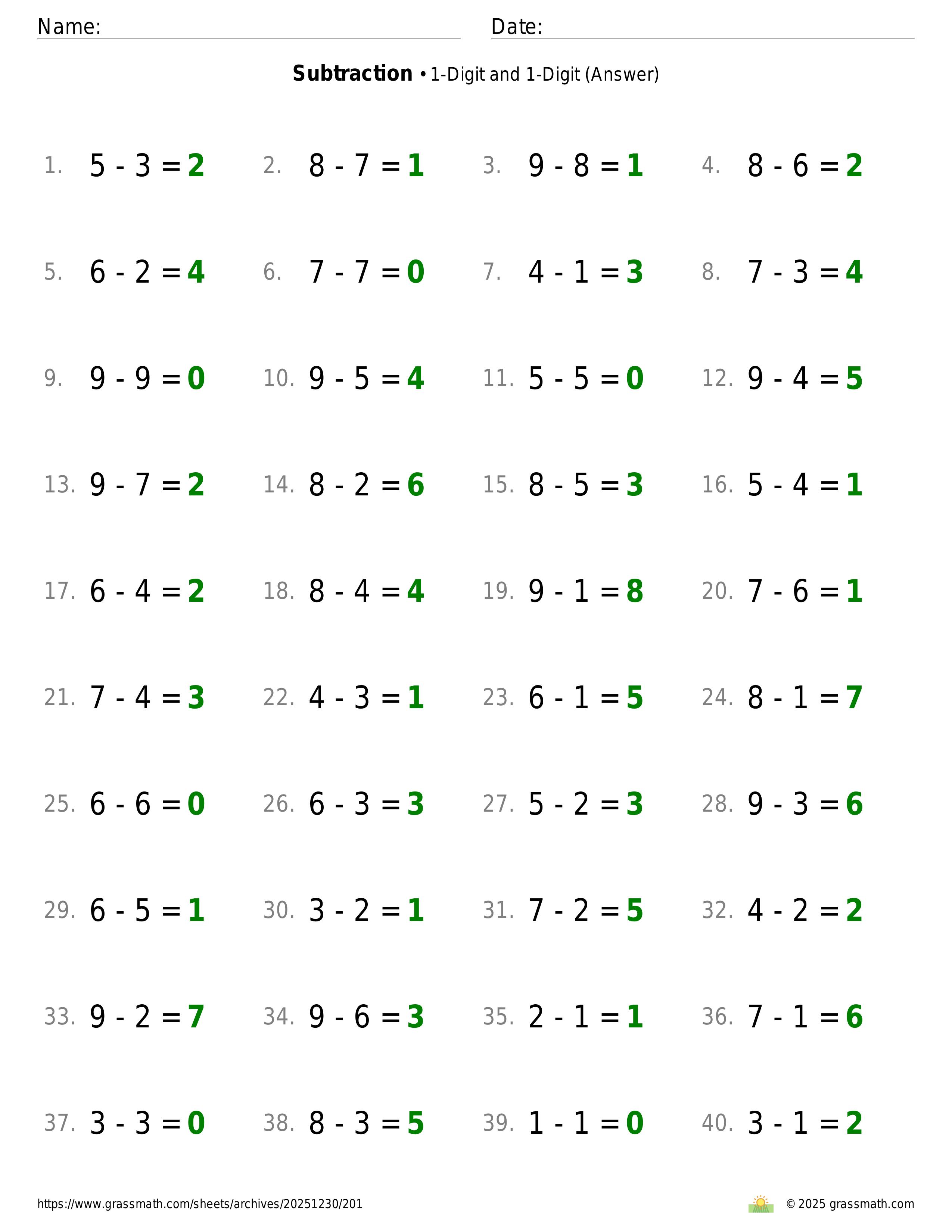 Subtraction 1-Digit and 1-Digit