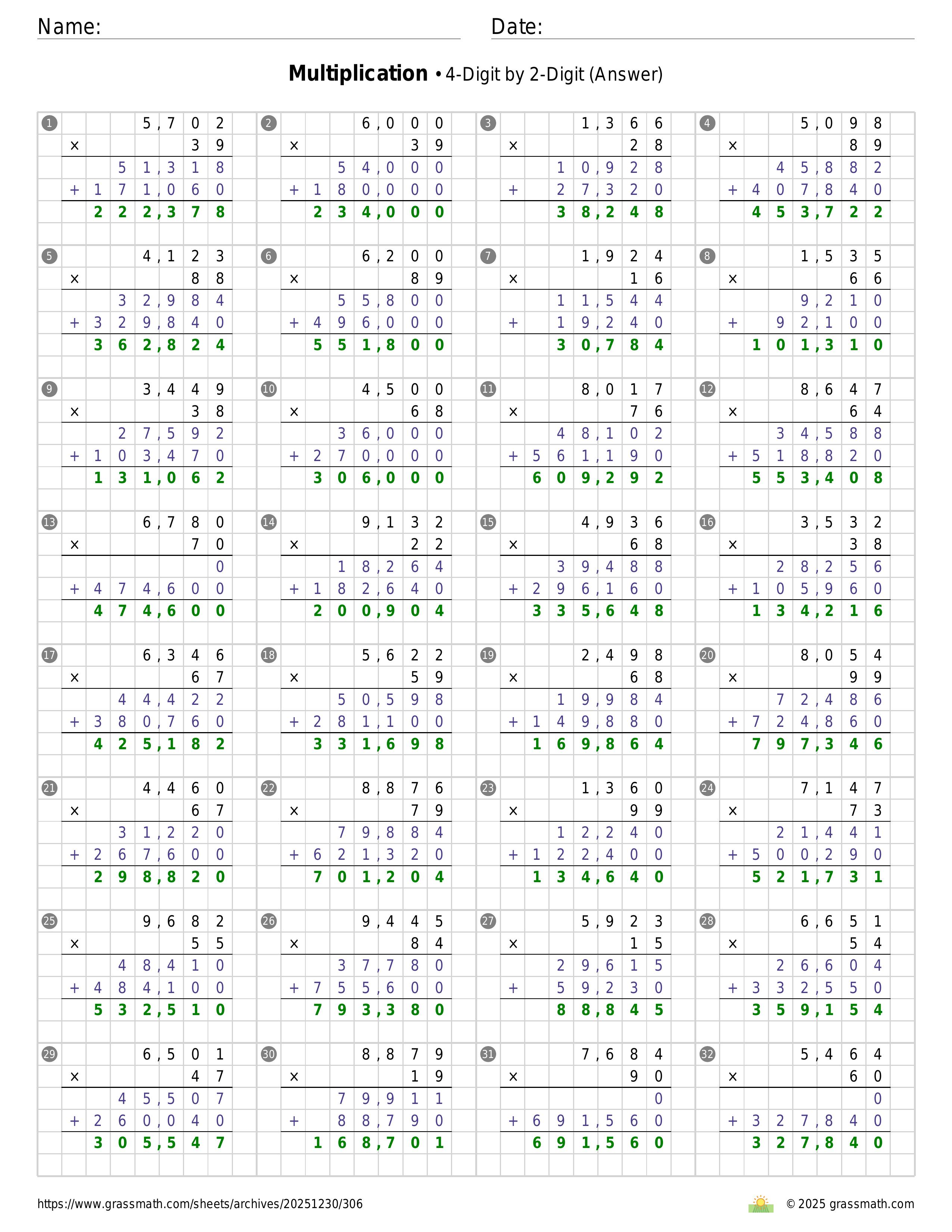 Multiplication 4-Digit by 2-Digit