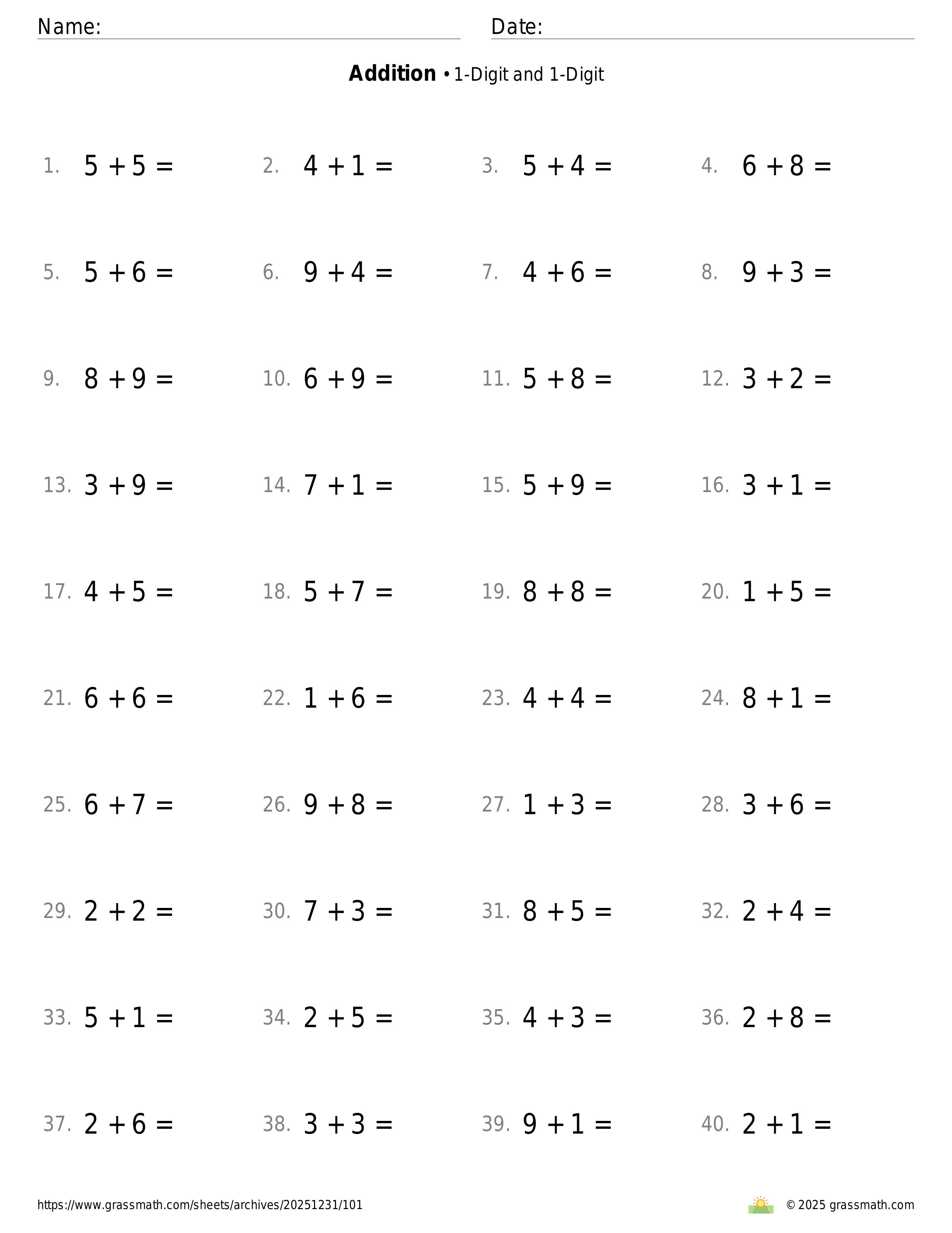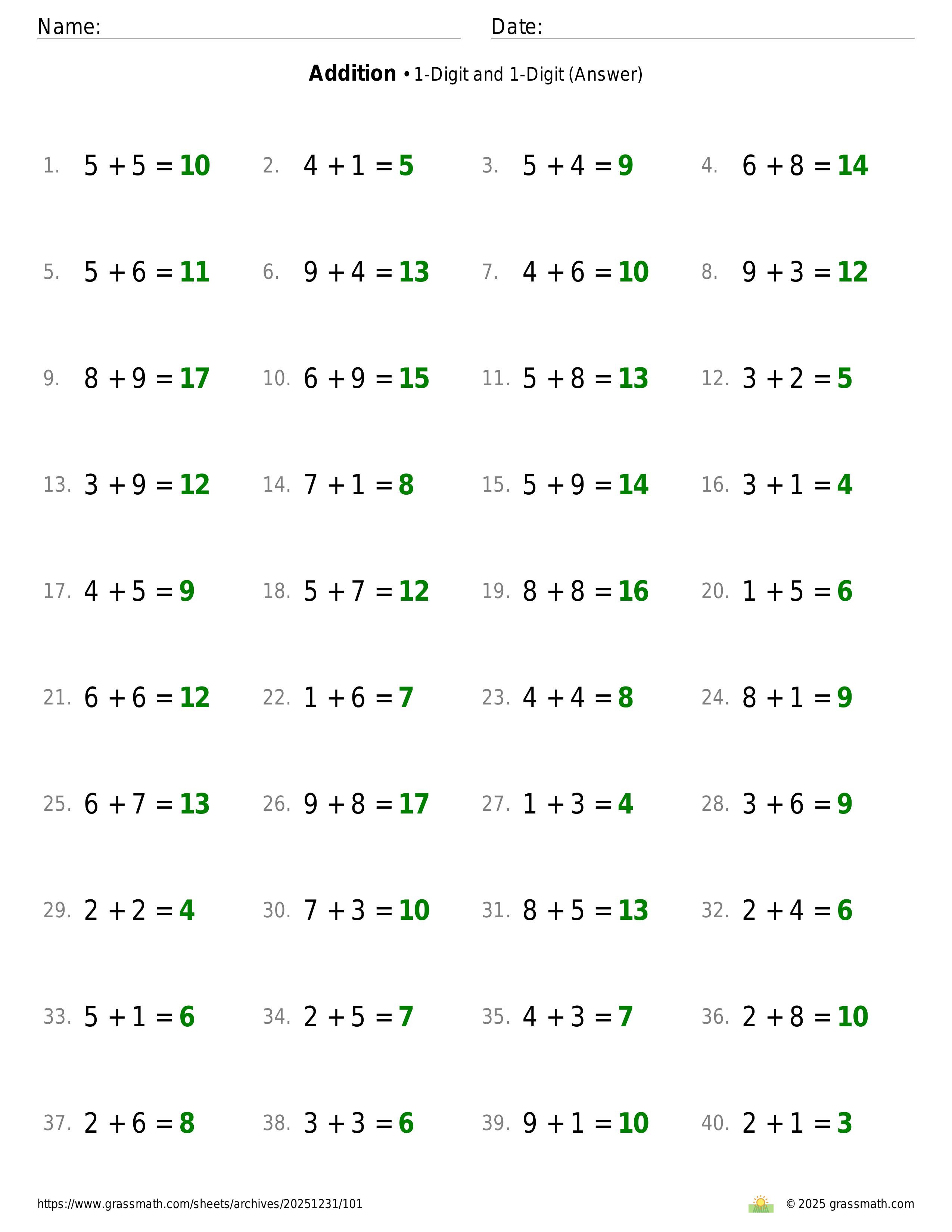 Addition 1-Digit and 1-Digit