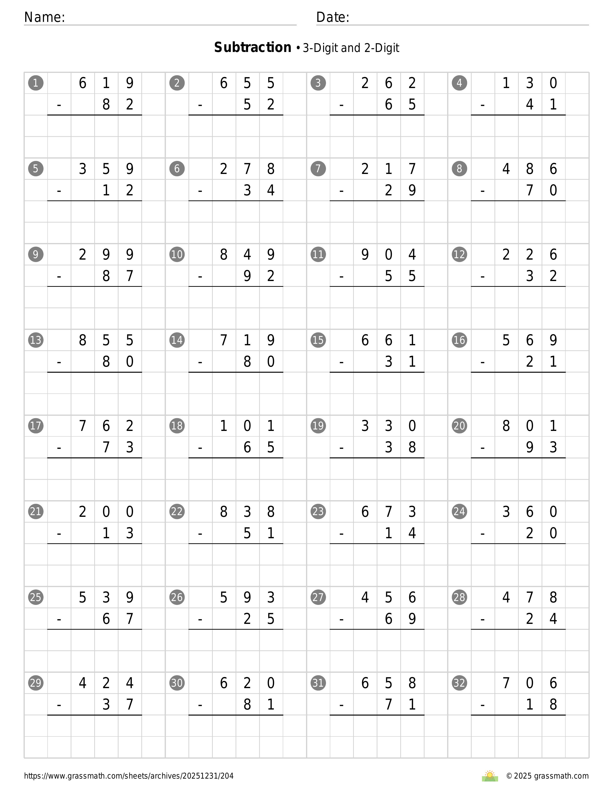 Subtraction 3-Digit and 2-Digit