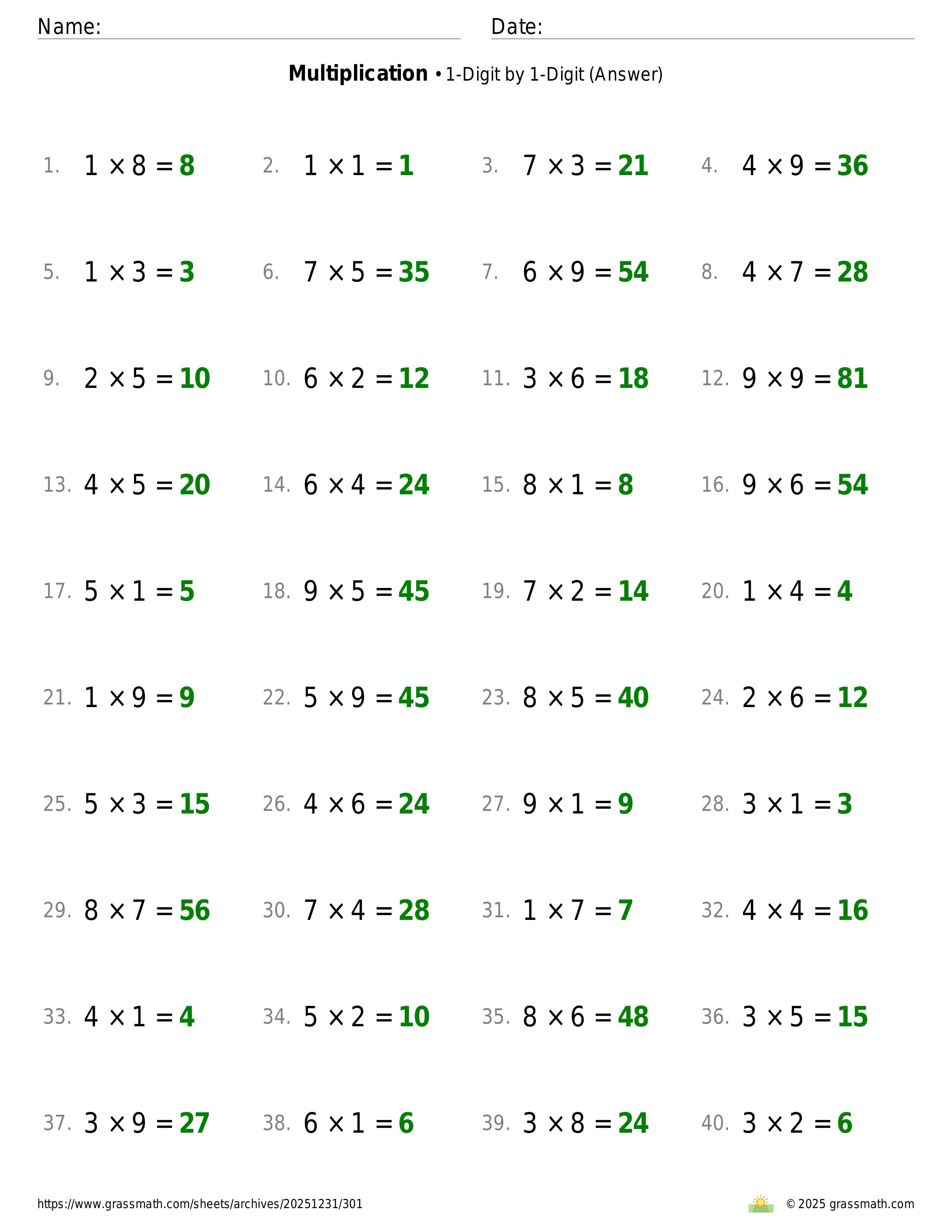 Multiplication 1-Digit by 1-Digit
