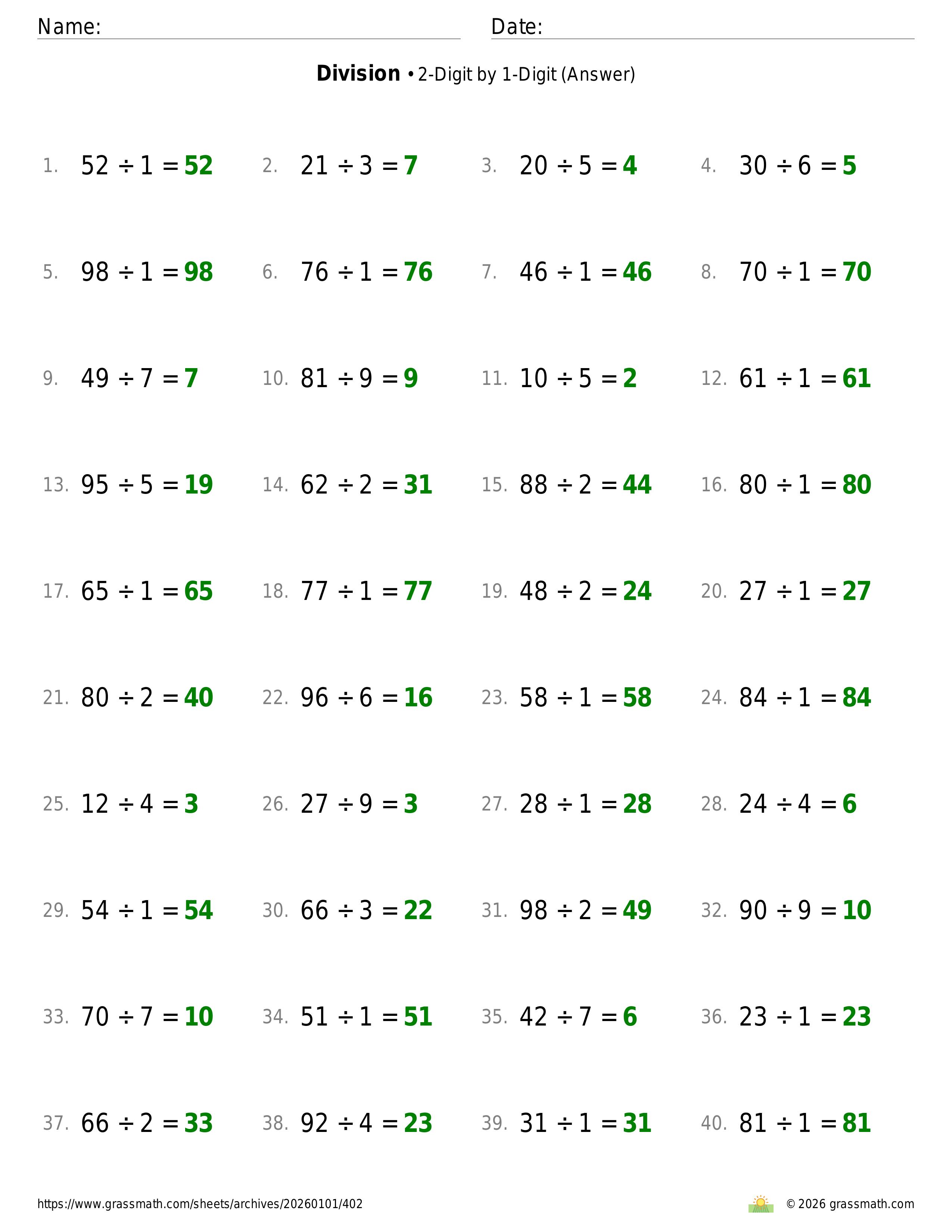 Division 2-Digit by 1-Digit